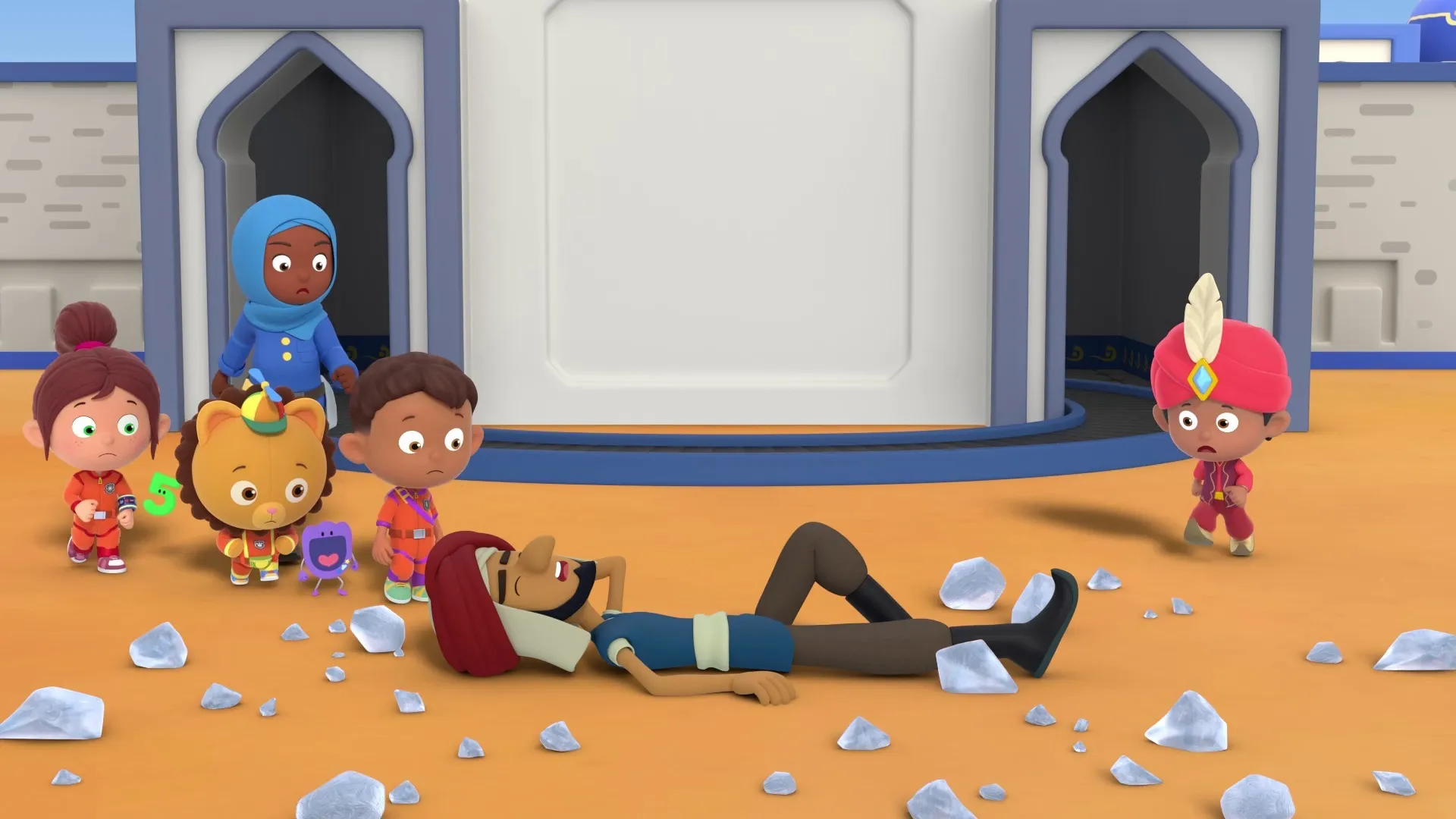 +"description": "Aamil veut créer une exposition de sculptures de glace pour son père, le Sultan, mais le désert est trop chaud et les statues fondent !\r"