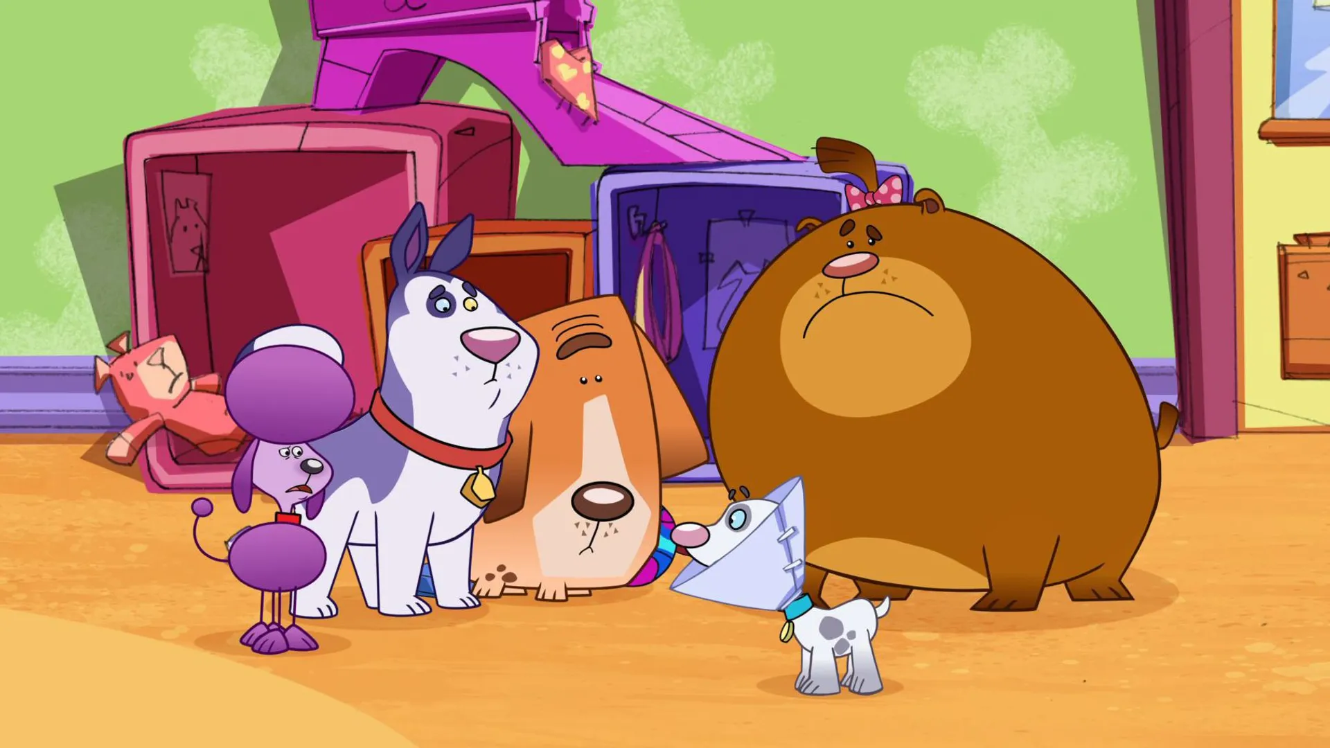 +"description": "Lucas arrive à la garderie avec une collerette en plastique fixée à son collier. Il a une infection à l'oreille et la collerette l'empêche de se gratter. "