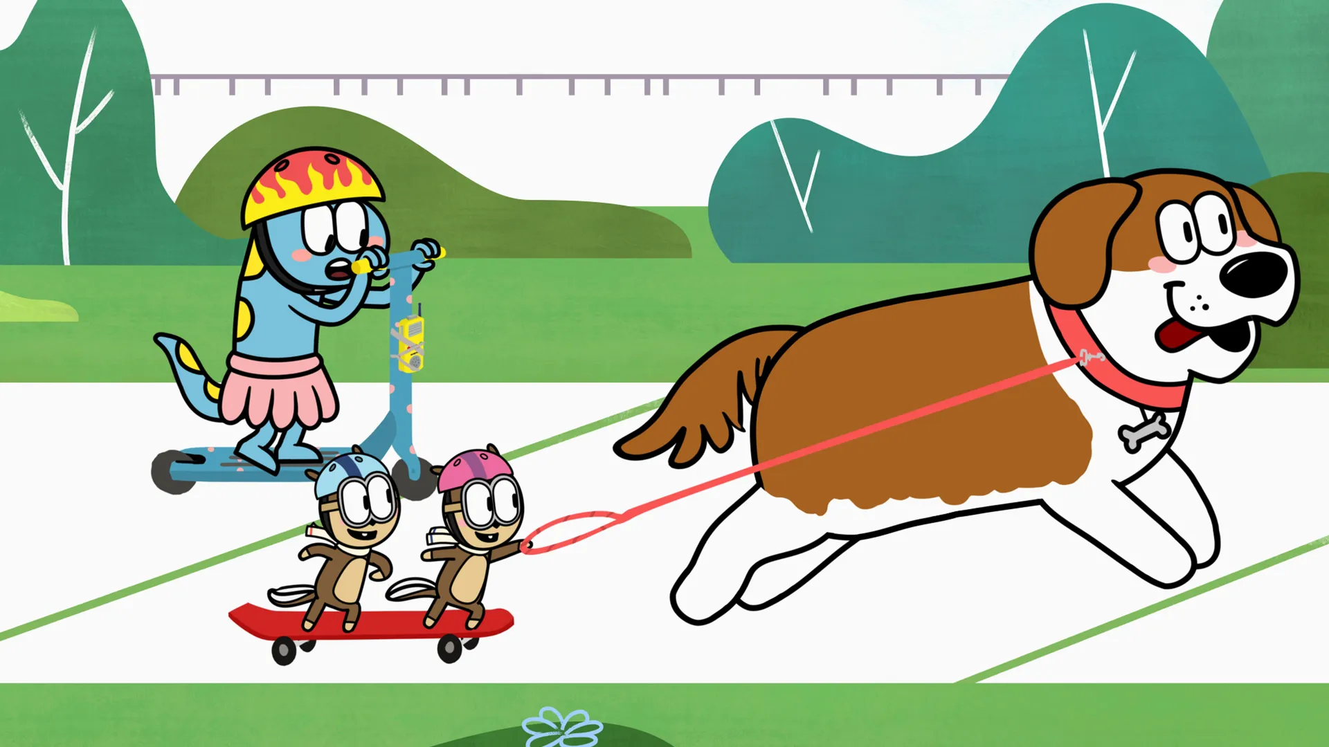 +"description": "Zazie fait une course de trottinette avec les tamias, mais de façon très consciencieuse. "