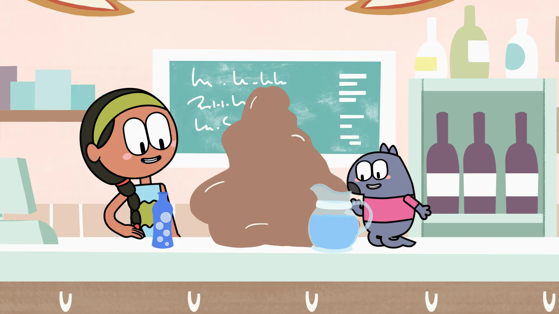 +"description": "Romy et Socrate fabriquent un énorme modelage qui reste collé sur le comptoir."