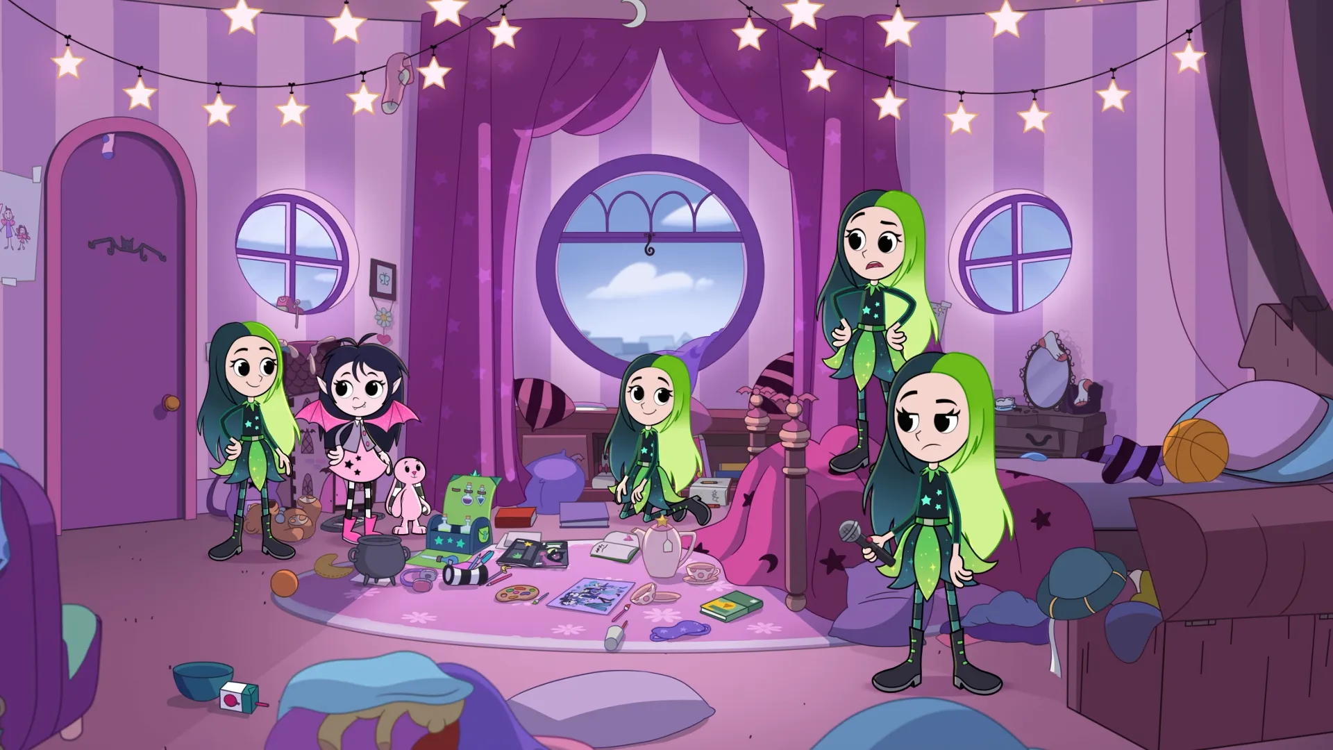 Mirabelle et son père viennent chercher Isadora pour l'emmener à un évènement sportif, mais avant, les deux filles doivent ranger la chambre la petite fée-vampire. Elles préparent une potion afin de créer un clone de Mirabelle et accélérer le rangement.