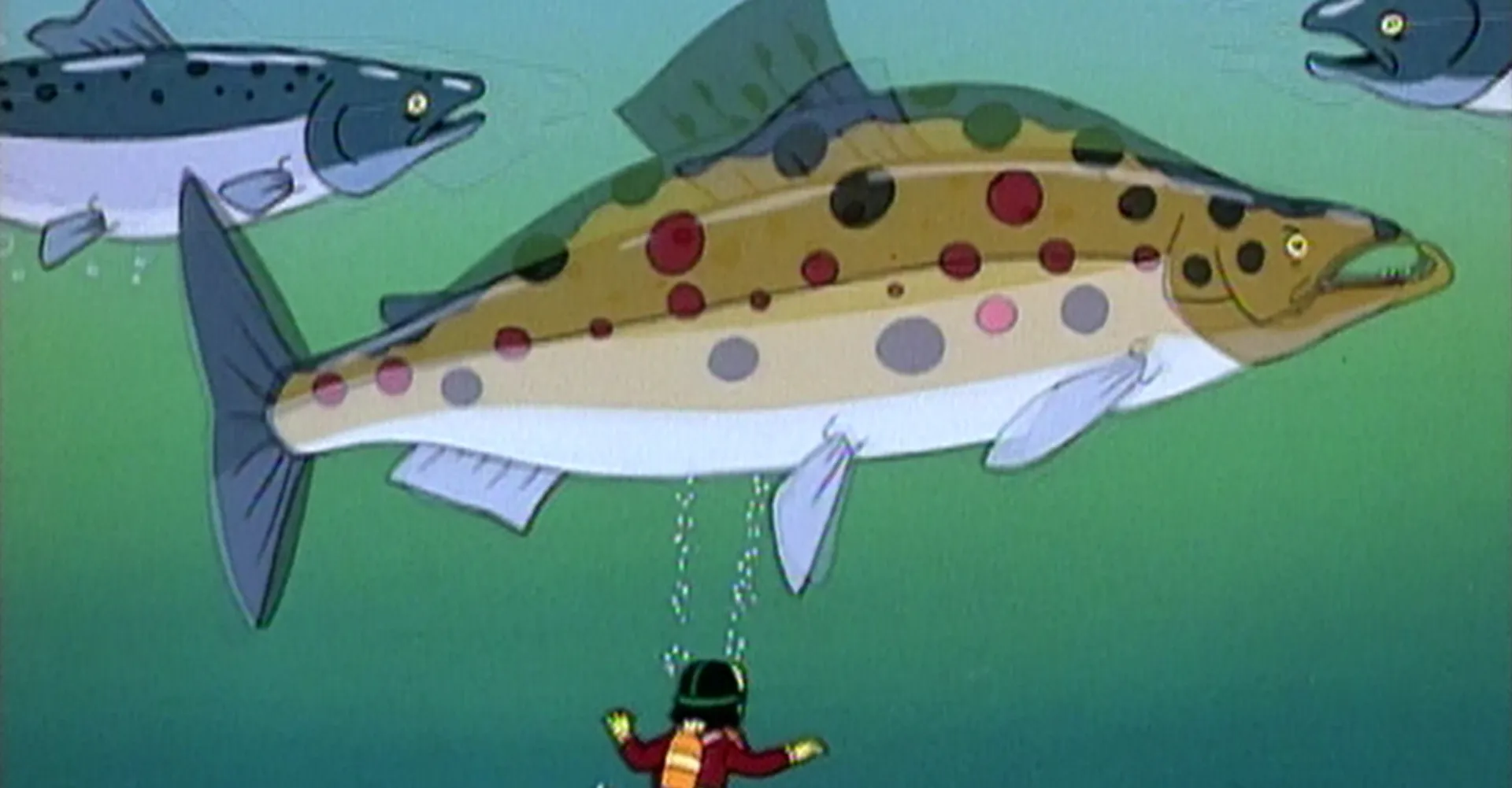 +"longDescription": "Le bus à la pêche en profite pour étudier les moeurs des saumons. Réussira-t-il un bon coup de filet?"