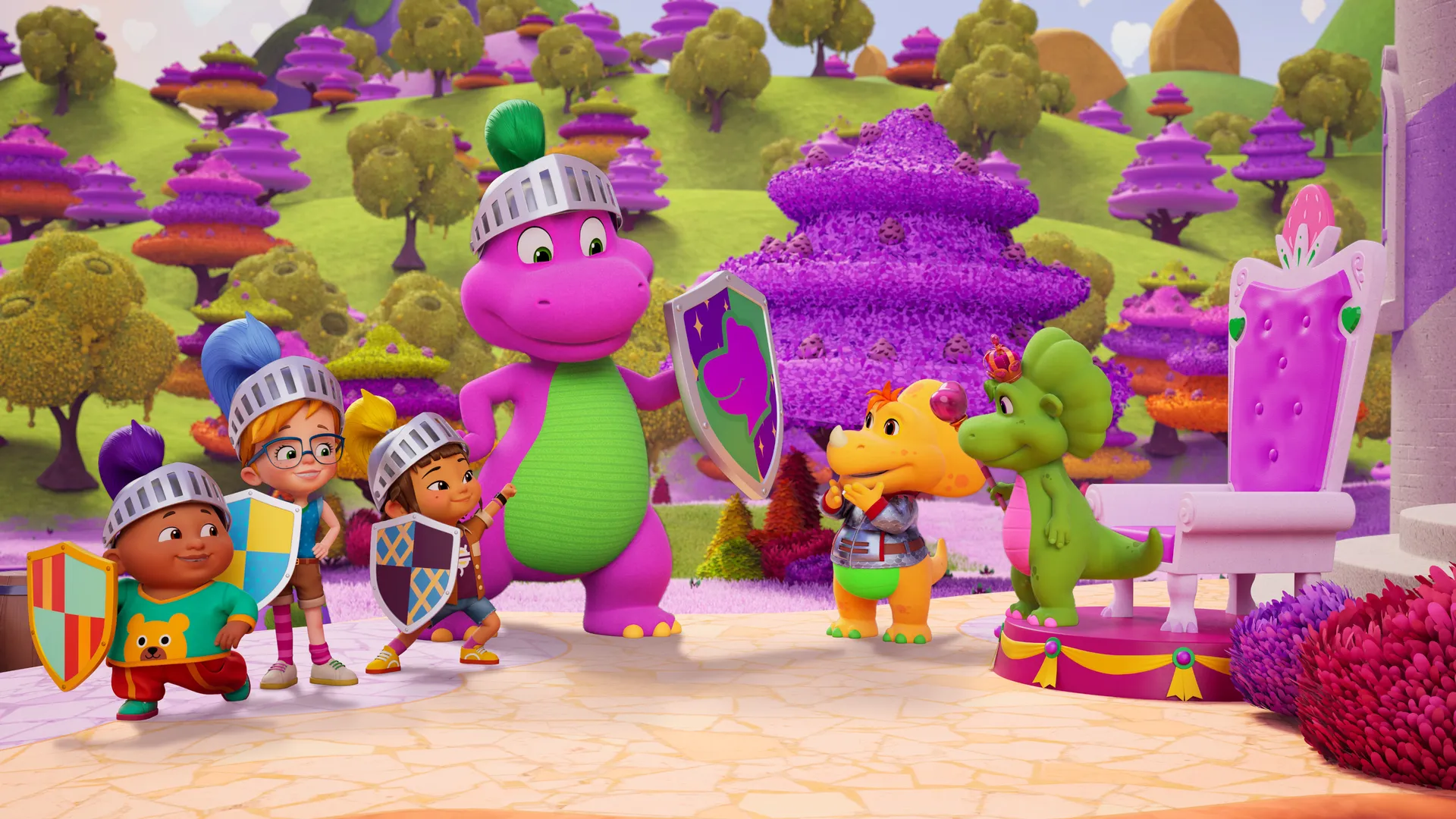 Voici Barney, le dinosaure violet qui chante, danse et répand de l'amour autour de lui ! Cette nouvelle série d'animation se déroule dans la plaine de jeux de la ville, où Barney s'amuse en compagnie des dinosaures Billy et Baby Bop, ainsi que de leurs trois jeunes amis. À travers leurs aventures créatives ou amusantes, Barney aide les enfants en bas âge à comprendre leurs émotions et leurs tracas. Il leur explique comment s'apprécier, comment aimer et traiter les autres avec respect.
