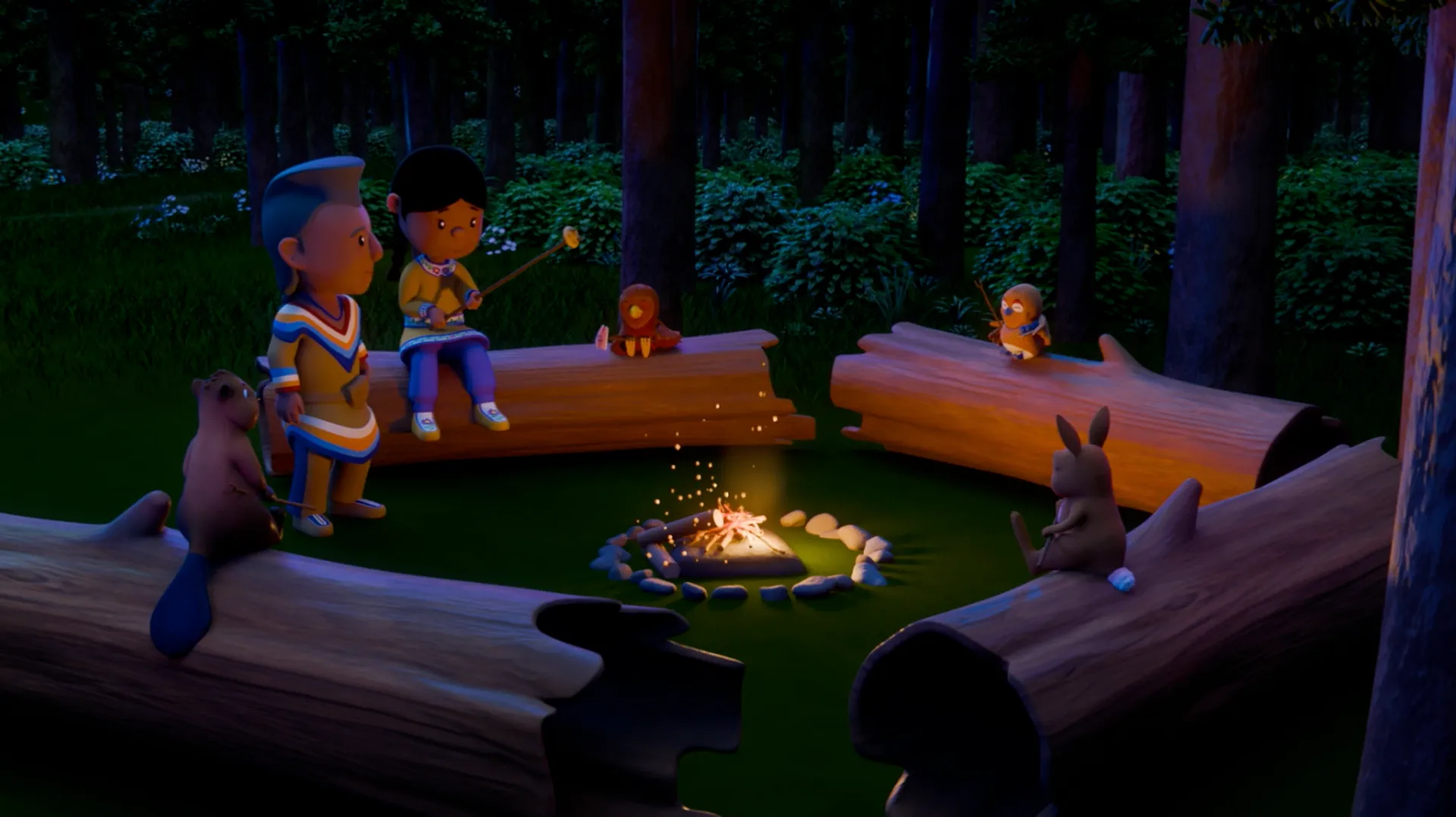 +"longDescription": "Les Copains se réunissent autour d'un feu de camp pour partager des histoires effrayantes à la nuit tombée."