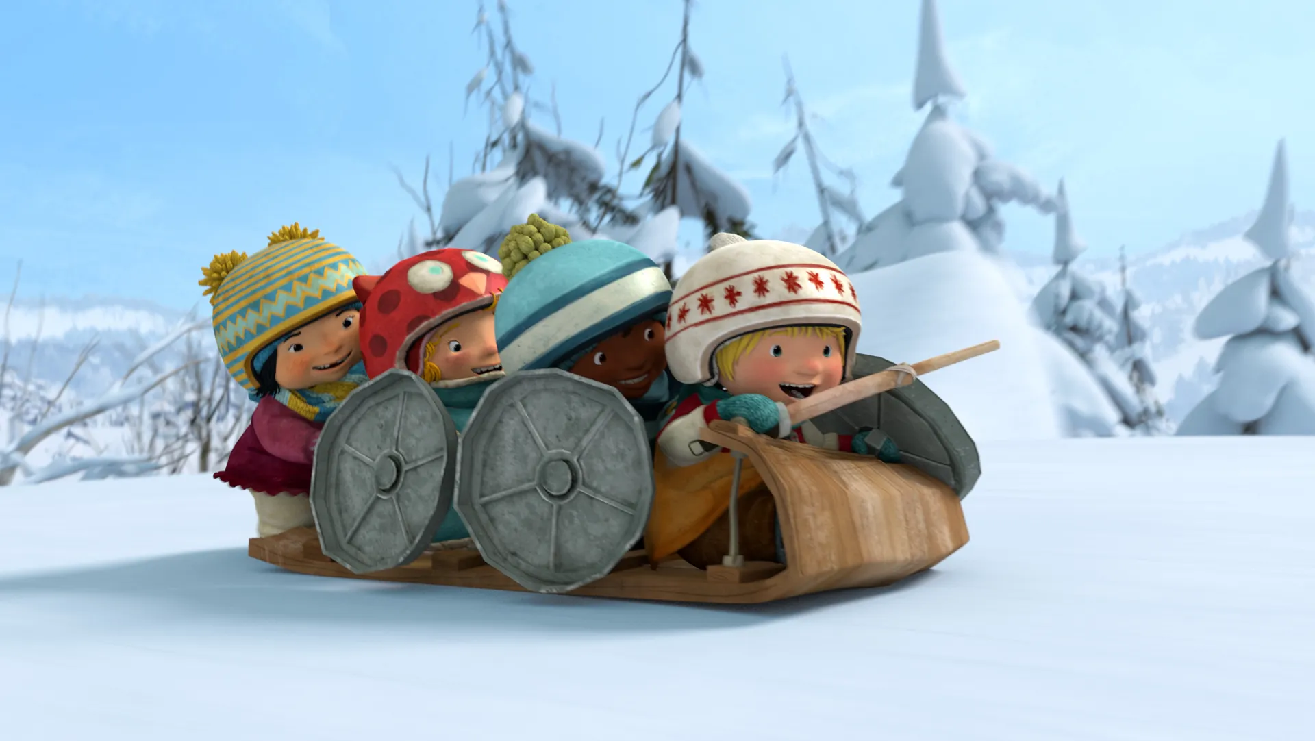 Allez jouer dehors avec vos amis! Pour Violet, Tomas, Sami et Kiki, toutes les situations de la vie quotidienne sont bonnes pour s'amuser! Rien ne leur fait plus plaisir que de jouer dehors, particulièrement dans la neige lors d'une belle journée d'hiver. Violet et Tomas, les deux meilleurs amis du monde, jouent souvent avec Kiki et Sami. Tous les quatre, ils organisent une tonne d'activités! À six ans, absolument rien n'est à leur épreuve, et ils n'hésitent jamais à inventer toutes sortes de jeux, peu importe la situation. Leur quatre personnalités bien distinctes peuvent parfois occasionner quelques frictions, et les amis découvrent ce qui se passe quand on respecte les idées et les sentiments des autres... ou pas! Toujours prêts à se lancer dans une nouvelle aventure, ils agissent souvent avant de réfléchir... et leurs erreurs les poussent à tirer des leçons et à trouver de nouvelles solutions. Leurs jeux sont spontanés, inventifs, rigolos, et nous réservent toujours des surprises. Les quatre copains aiment par-dessus tout rire et s'amuser, et en les regardant, on a aussitôt envie de se joindre à eux. Qu'est-ce qu'on attend? Youpi!