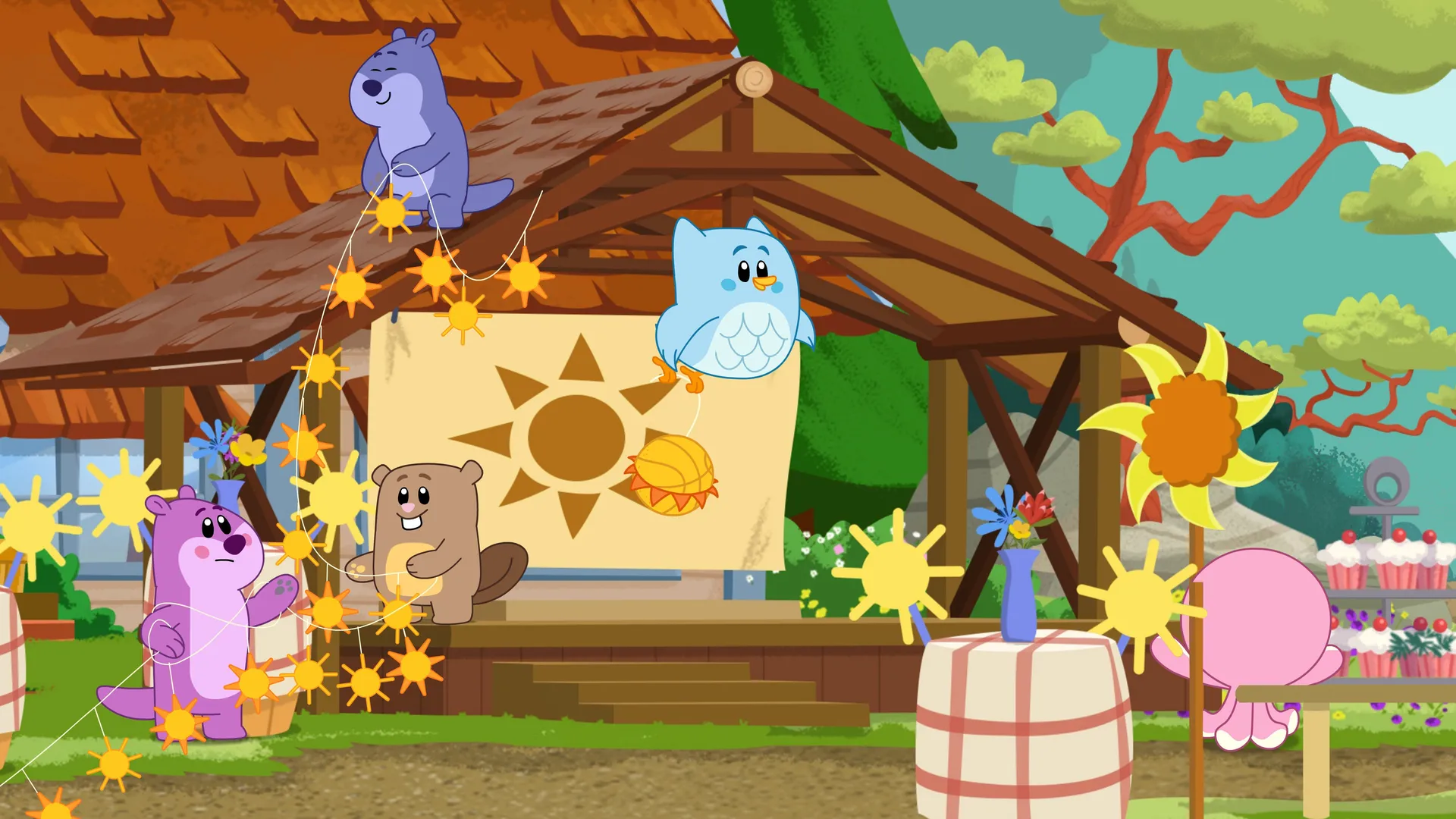 Zack, Zoé et les aventuriers préparent une grande fête et sont tout excités.