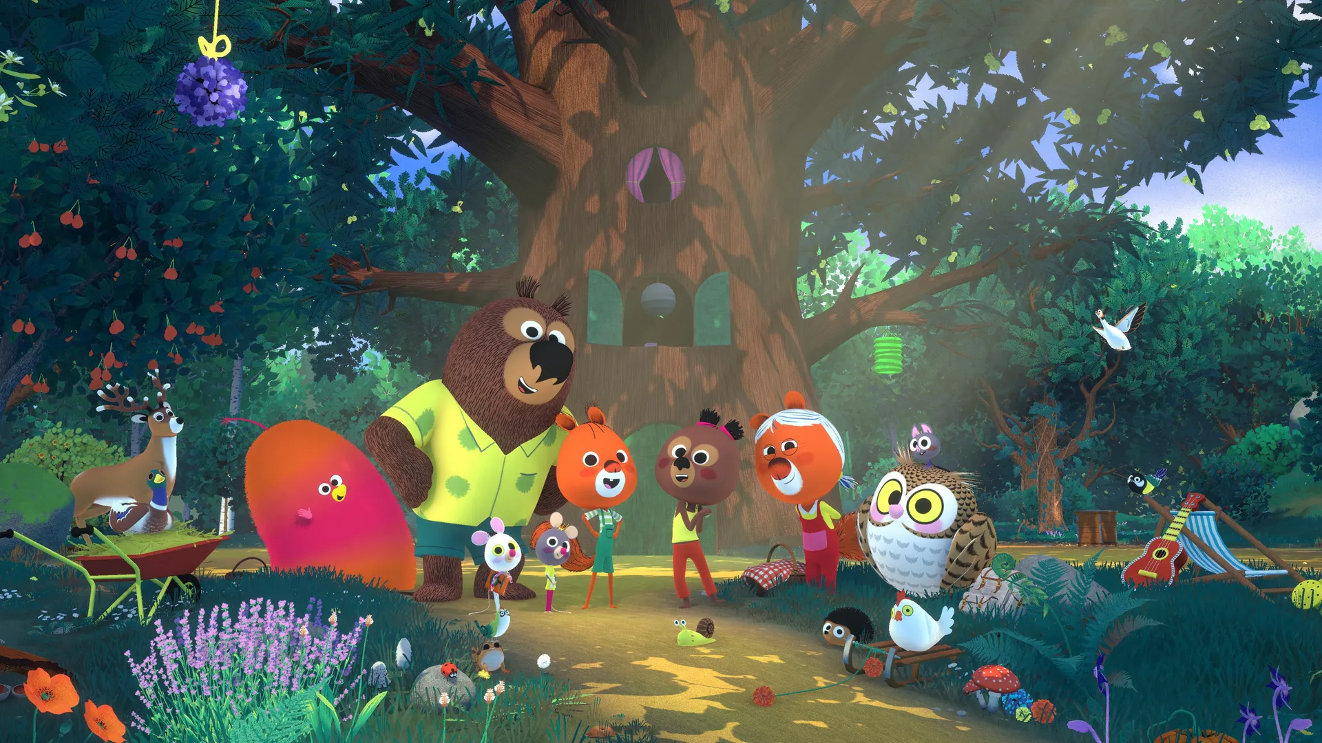 Edmond l'écureuil et Lucy l'oursonne sont élevés comme frère et soeur dans un grand châtaignier, sorte de cité radieuse de la forêt. Jouer et grandir en pleine nature, répondre aux énigmes que celle-ci soulève, et vivre l'aventure au grand air, la belle vie !