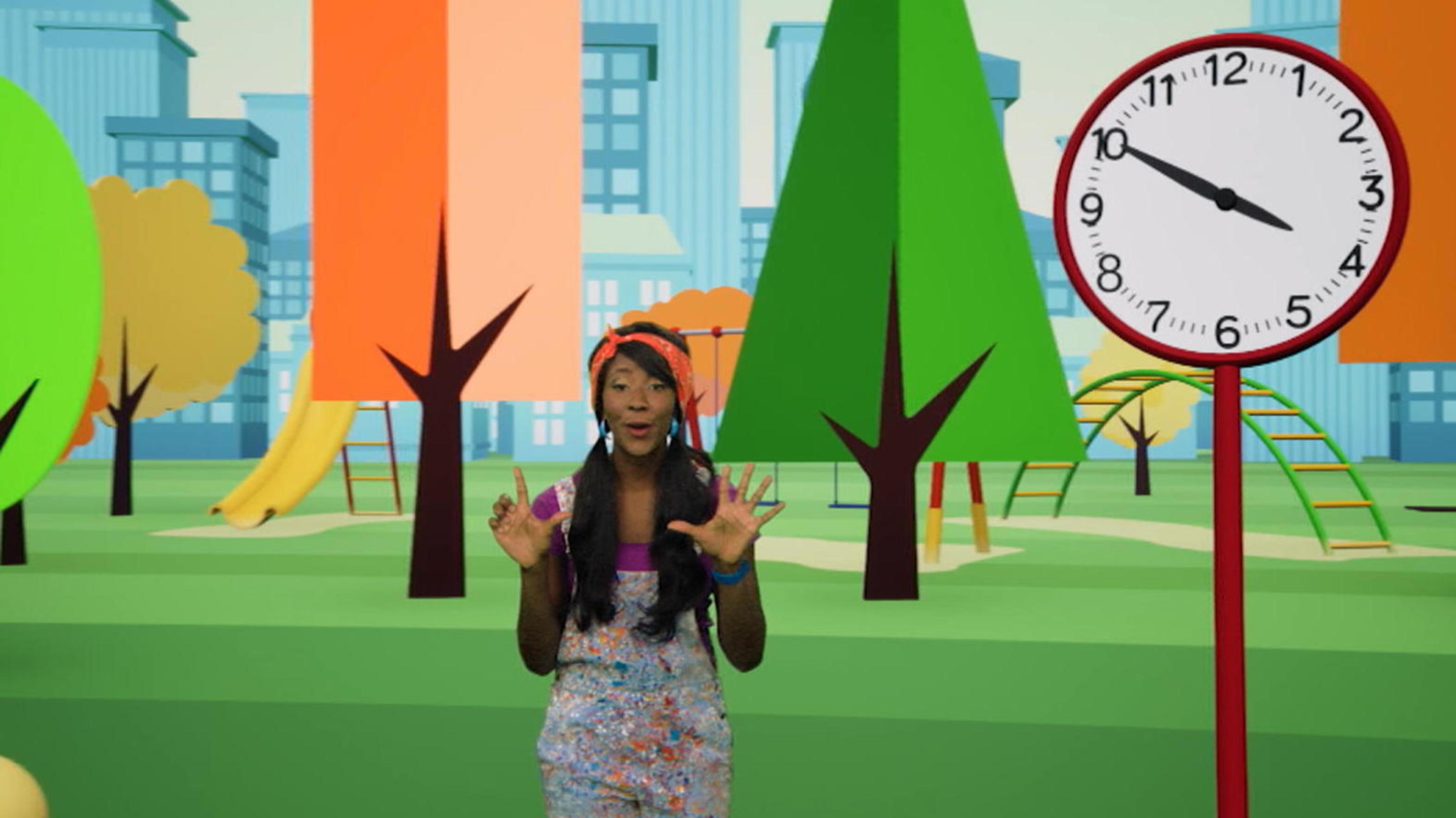 Apprends à lire l'heure sur une horloge avec Lexie dans le rigolo parc mathématique 1, 2, 3 jouons.