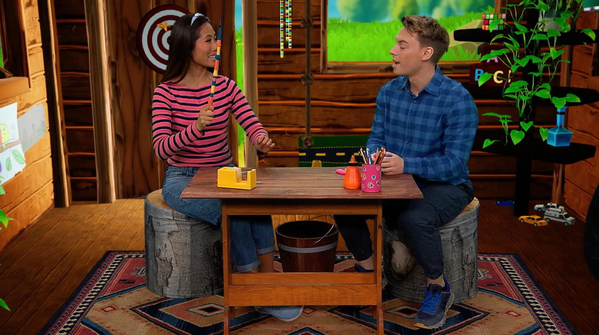 +"longDescription": "L'ingénieuse Alice et le créatif Christopher utilisent de la ficelle pour leurs créations : Alice fait une baguette magique et Christopher fabrique des pompons. Waouh, on peut vraiment réaliser plein de choses différentes à partir d'un même objet!"
