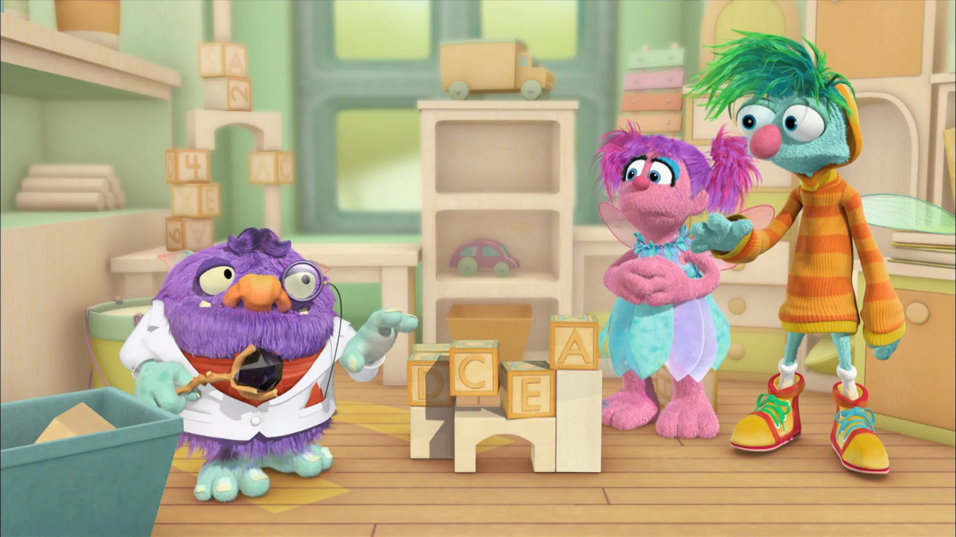 L'adorable fée en formation Abby Caddaby et sa bande éclectique de nouveaux amis s'envolent vers des aventures d'apprentissage, comme sauver leur petit professeur de l'intérieur d'une bouteille de génie ou déjouer un géant au sommet d'un haricot colossal. À la maison, les enfants peuvent suivre l'exemple d'Abby et apprendre à « penser scintillant » en raisonnant à voix haute et en utilisant des modèles, des estimations et d'autres concepts pour réduire les grands défis à la taille.