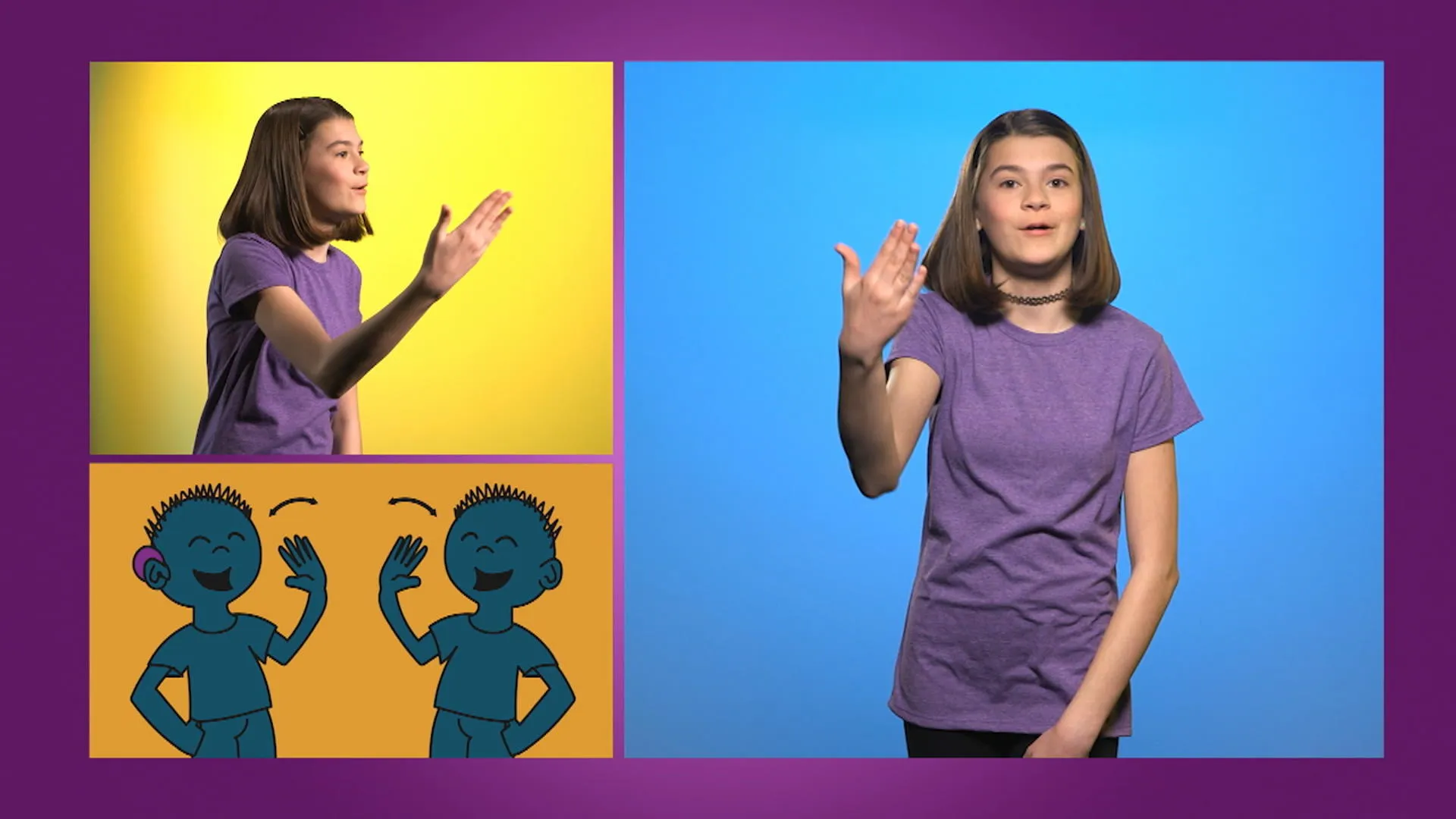 +"description": "Emma te montre comment faire bonjour, comment ça va et ça va bien en langue des signes (LSQ)."