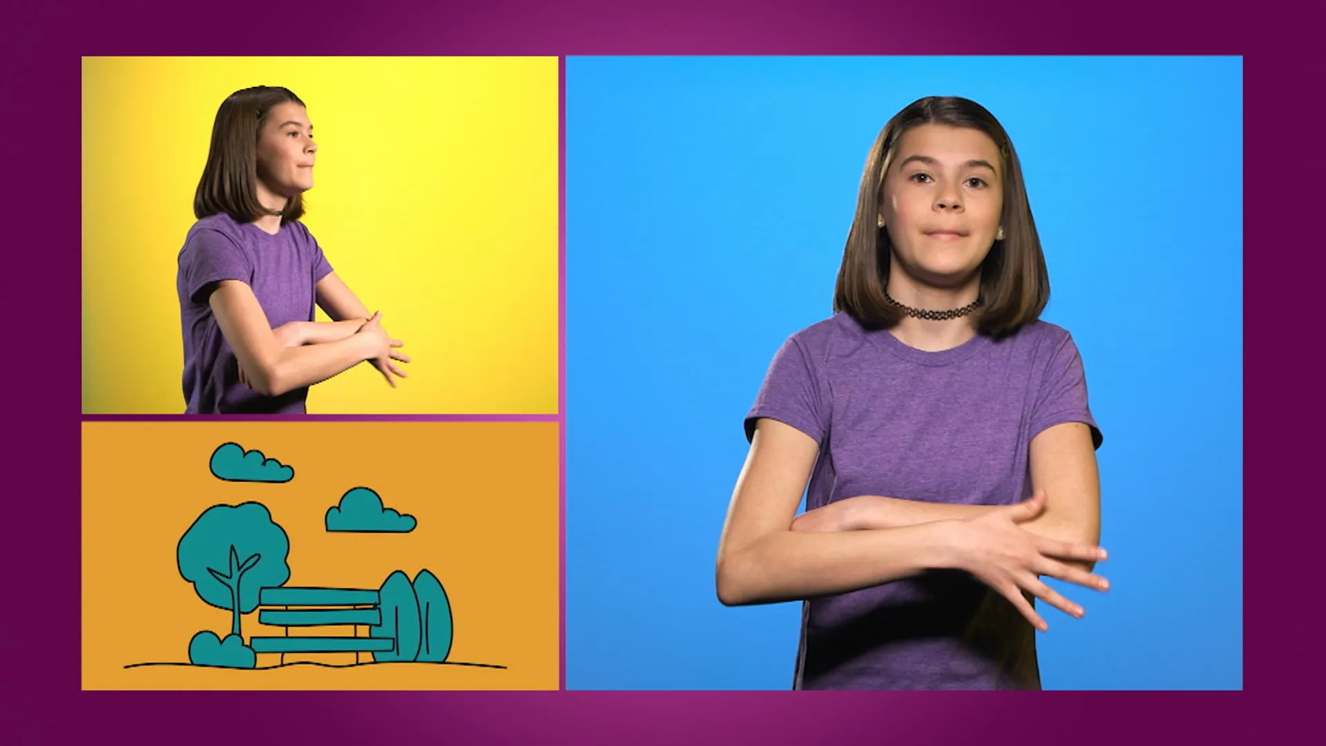 Emma te montre comment faire la maison, l'école et le parc en langue des signes (LSQ).
