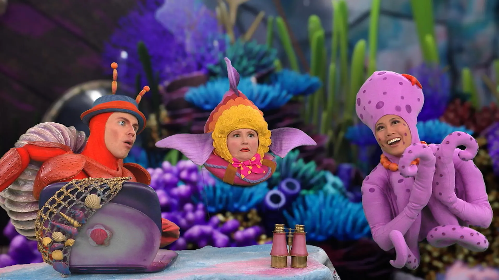 +"description": "Trois poissons-journalistes curieux observent de leur aquarium deux grands-mères rigolotes pour découvrir les émotions humaines. Aujourd'hui, ils découvrent la nervosité!"