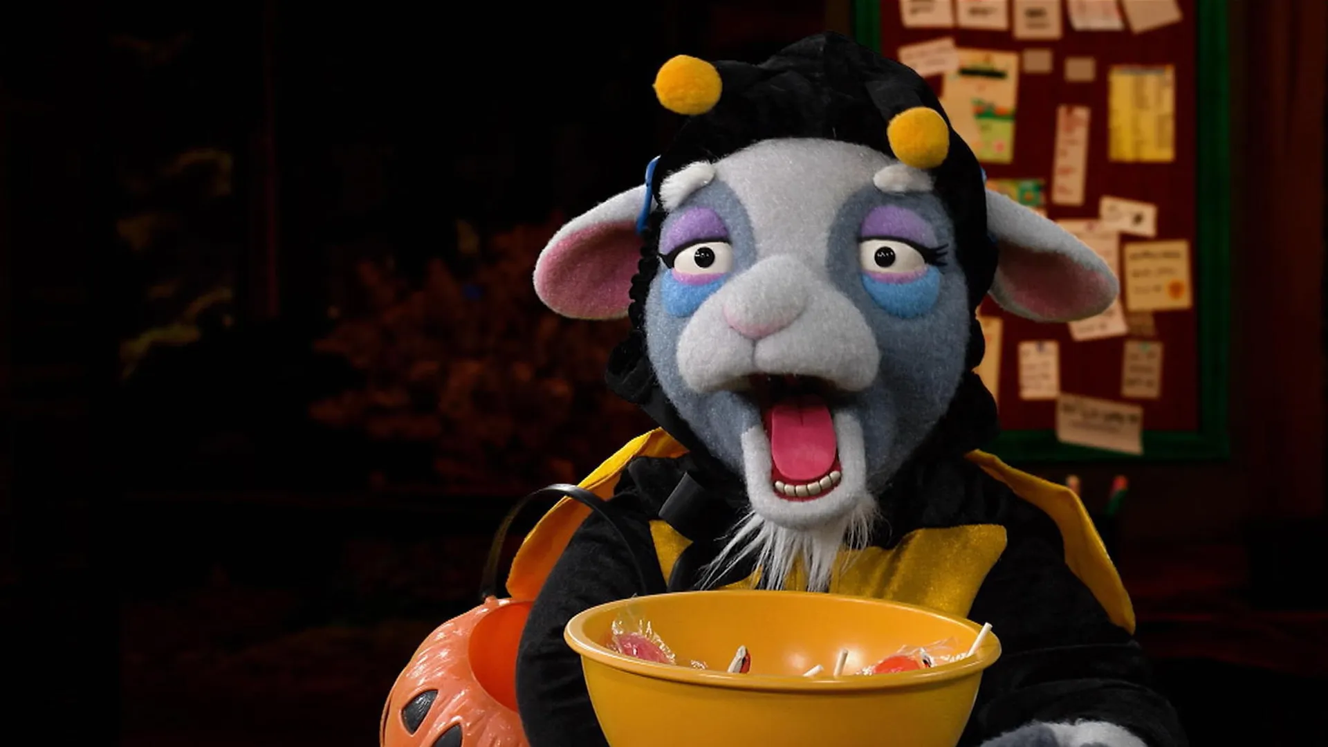 Pénélope est tellement excitée par la cueillette de bonbons d'Halloween qu'elle prend tous les bonbons sans en laisser aux autres...