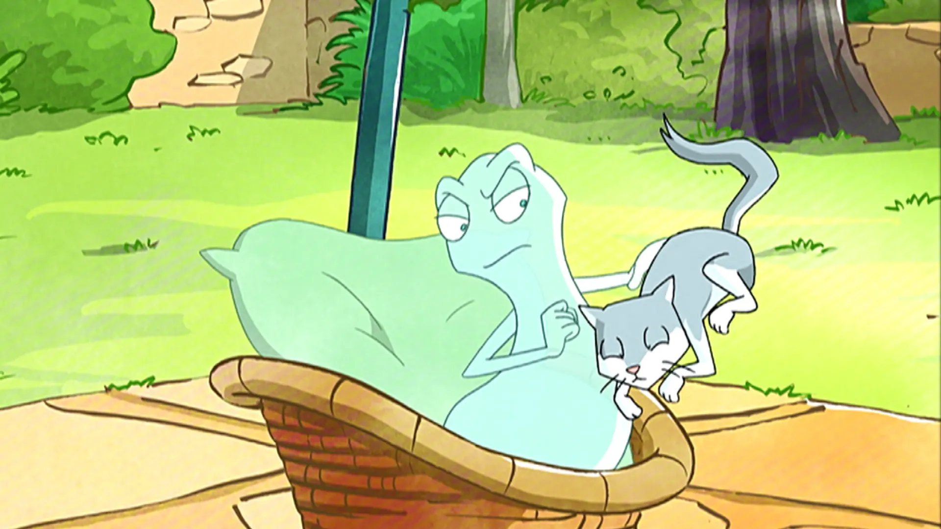 +"longDescription": "Sur le portique d'Emma, Victor et Lucas font les malins. Lucas invente une figure, la toupie humaine. Sur la balançoire, il tourne sur lui-même de manière à bien entortiller les deux cordes, puis, il recule pour prendre le maximum d'élan et se lance. Les cordes se détortillant à toute vitesse dévient le mouvement de balancier. Lucas heurte Victor et les poteaux du portique. Célestin arrête la vrille des cordes."
