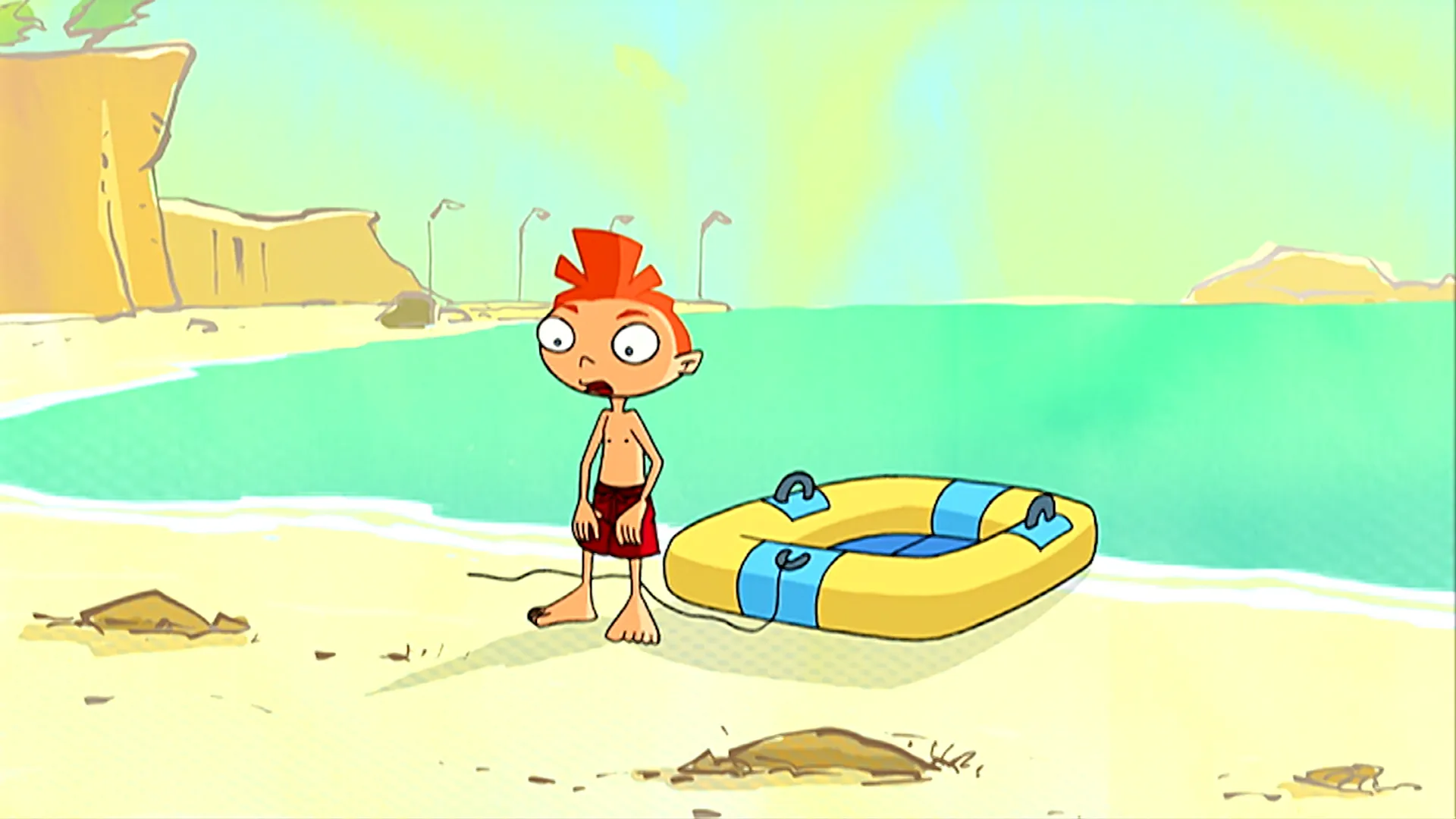 +"description": "Malgré l'interdiction de Papa, Lucas embarque seul dans le petit canot pneumatique et dérive loin de la côte. "