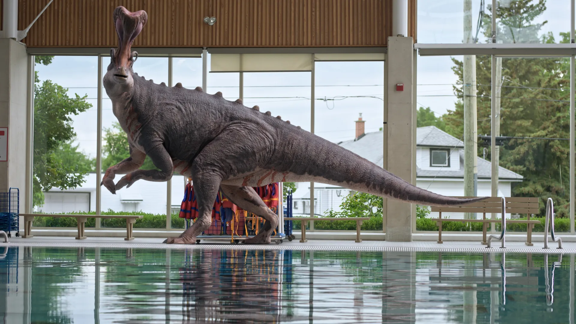 À la piscine, Dex résout la Dino-expérience 1003 : « Quel dinosaure terrestre nageait le plus rapidement ? » et aide Kayla à obtenir son meilleur temps de nage !