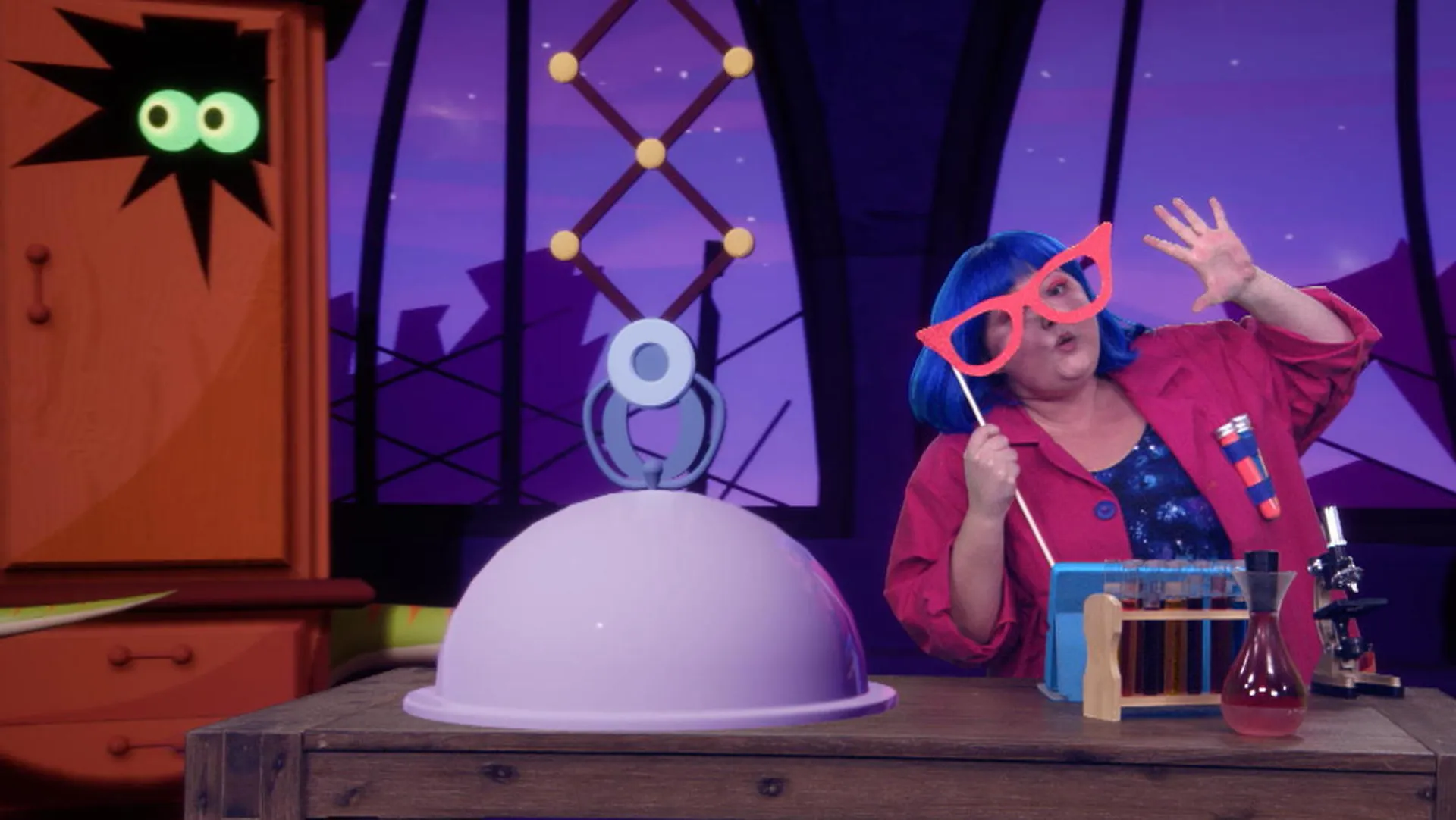 +"longDescription": "En utilisant ton sens de la vue, fais deviner à l'amusante Docteure FrankenSENS la balle qui se cache sous la cloche de son laboratoire."