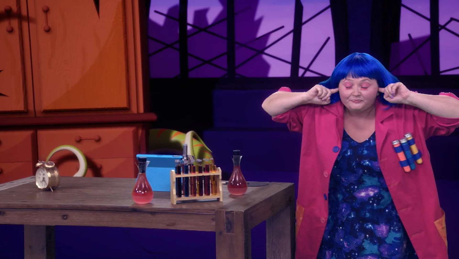Utilise ton ouïe pour faire deviner à Dr FrankenSENS le réveille-matin qui se cache sous la cloche de son laboratoire.