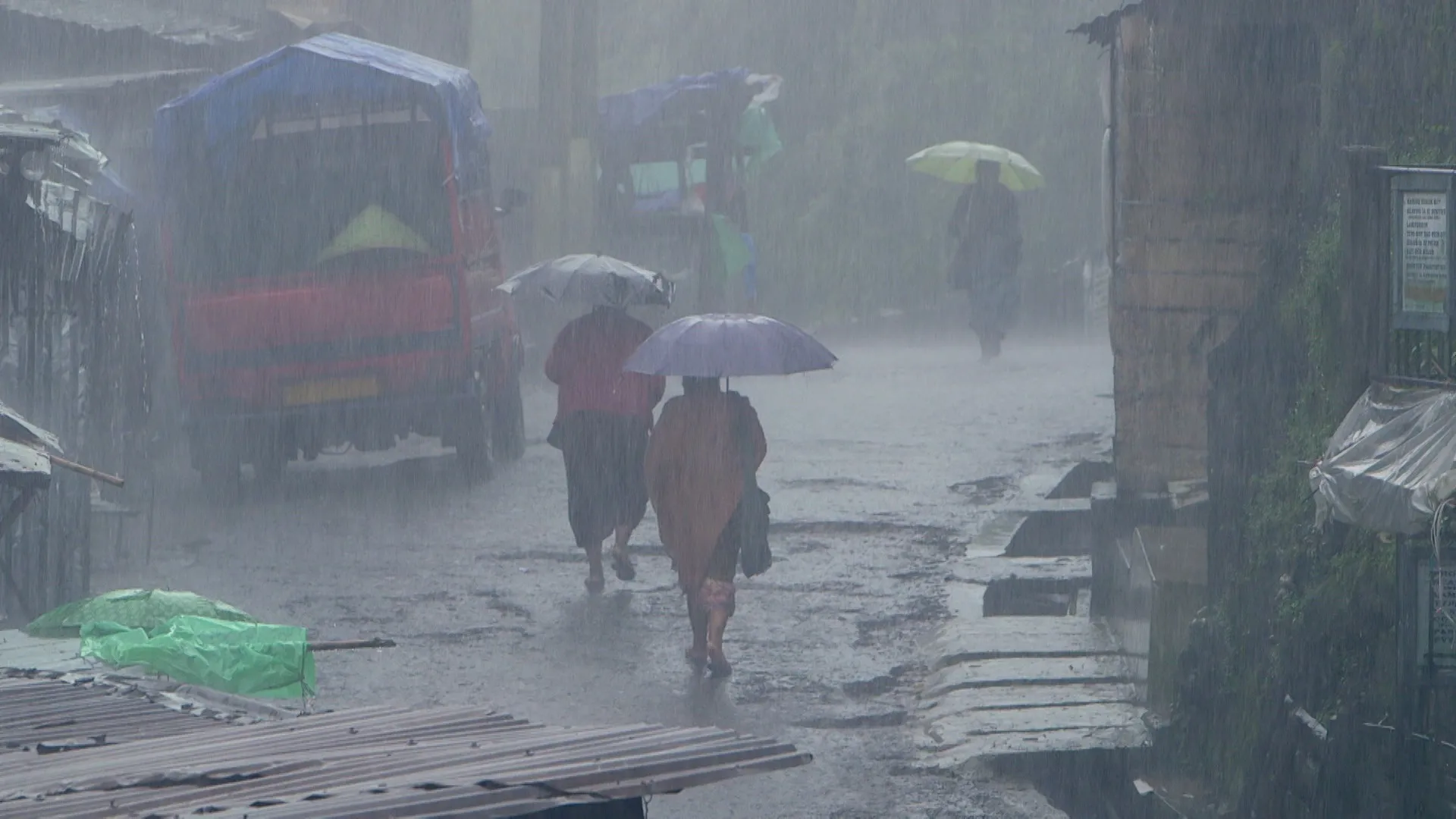 Mawsynram, au nord-est de l'Inde, dans l'État du Meghalaya, une région coincée entre l'Himalaya et la plaine du Bangladesh. Cette petite ville perchée à 1491 m d'altitude est officiellement l'endroit le plus pluvieux au monde !