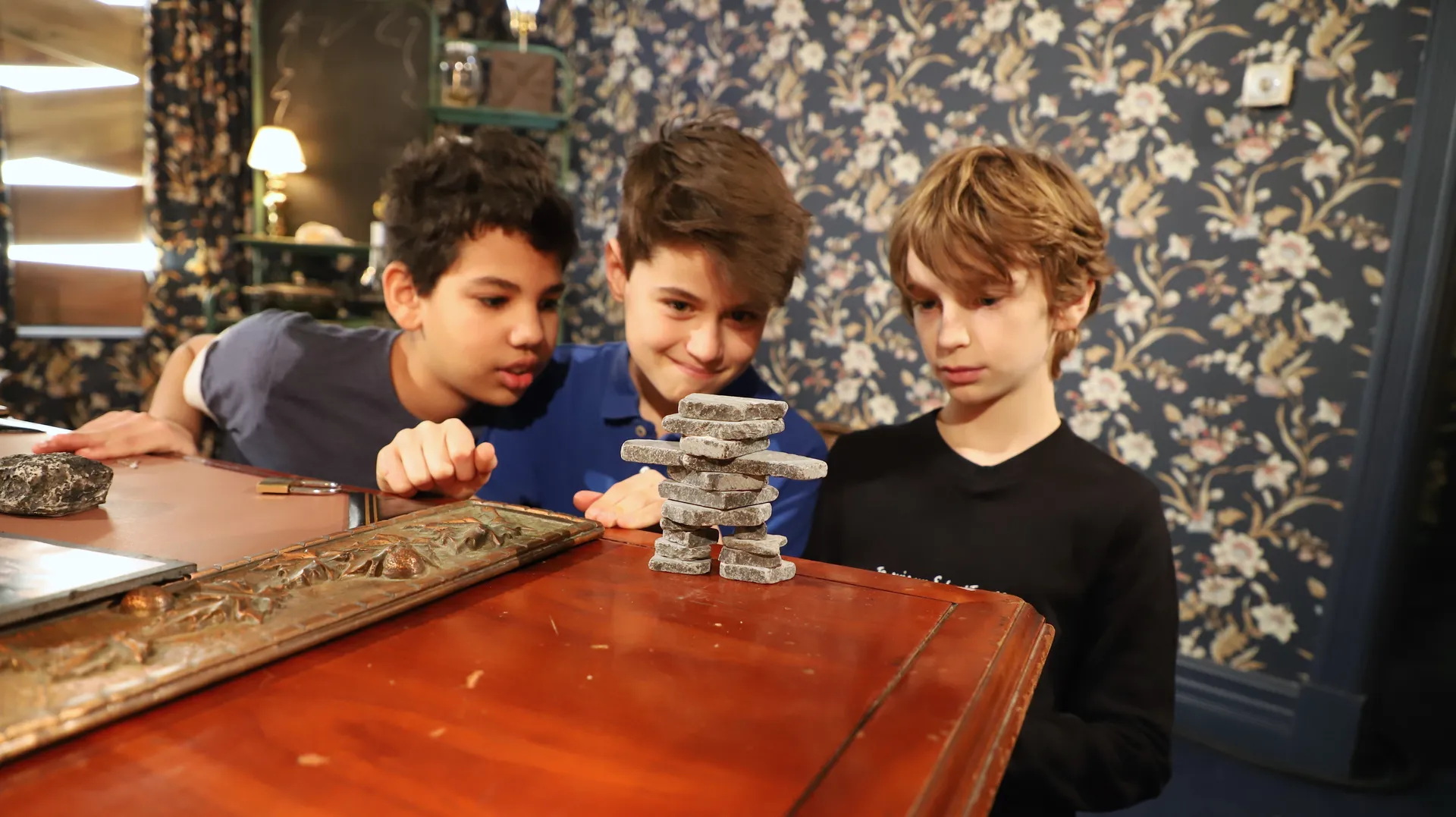 +"description": "Lucas, Sélim et Naël sont pris au piège dans la maison du professeur Kloridric. Dans ce jeu d'évasion grandeur nature, ils devront reproduire un inukshuk, identifier les pierres de naissance mystère et réussir une éruption volcanique. "