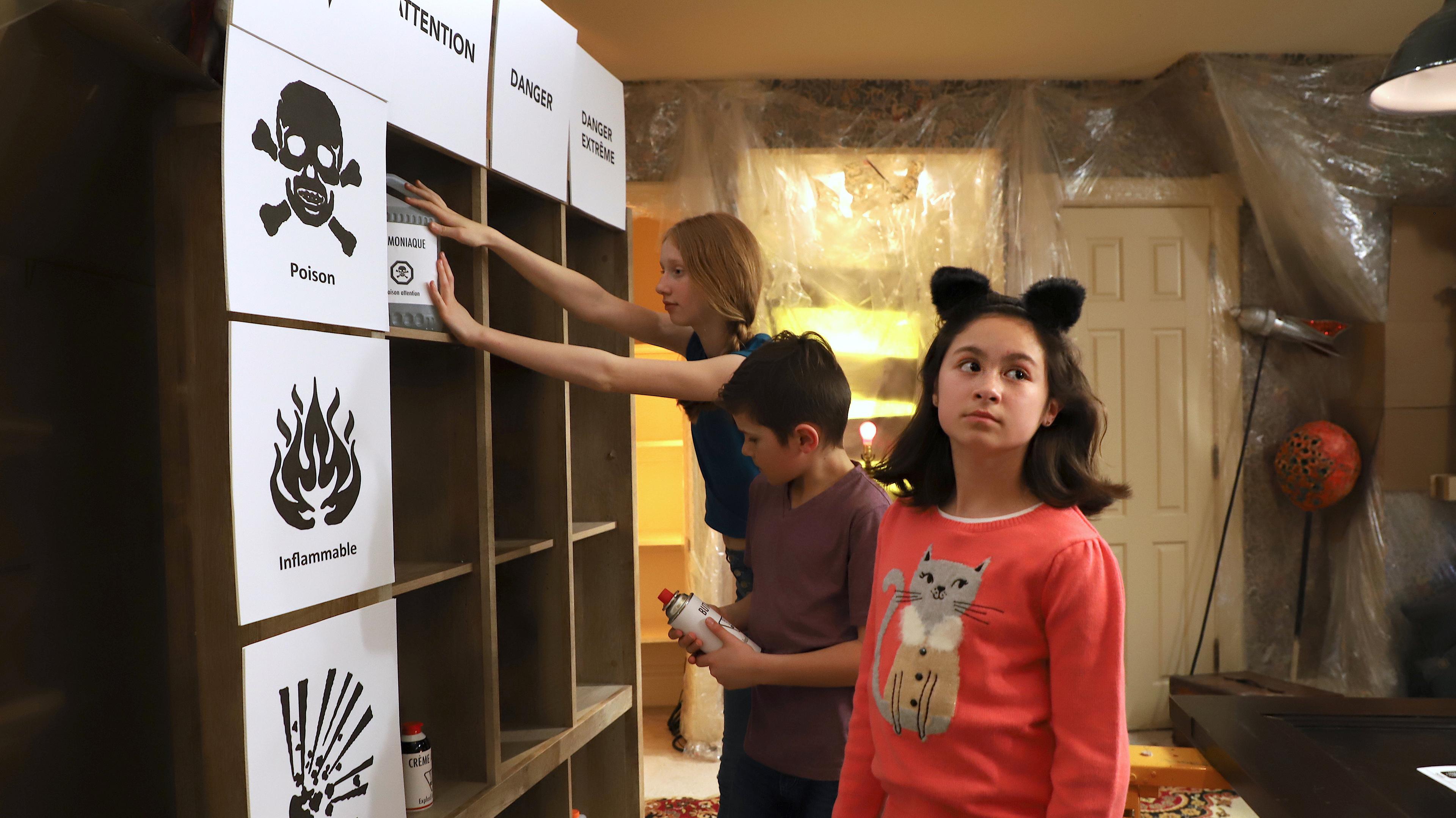 Pour échapper au Professeur Kloridric, Giselle Marie, Lily-June et Marek devront repérer des bestioles venimeuses, mettre les étiquettes de divers poisons dans le bon ordre et réaliser une expérience de filtration, avec une cigarette!