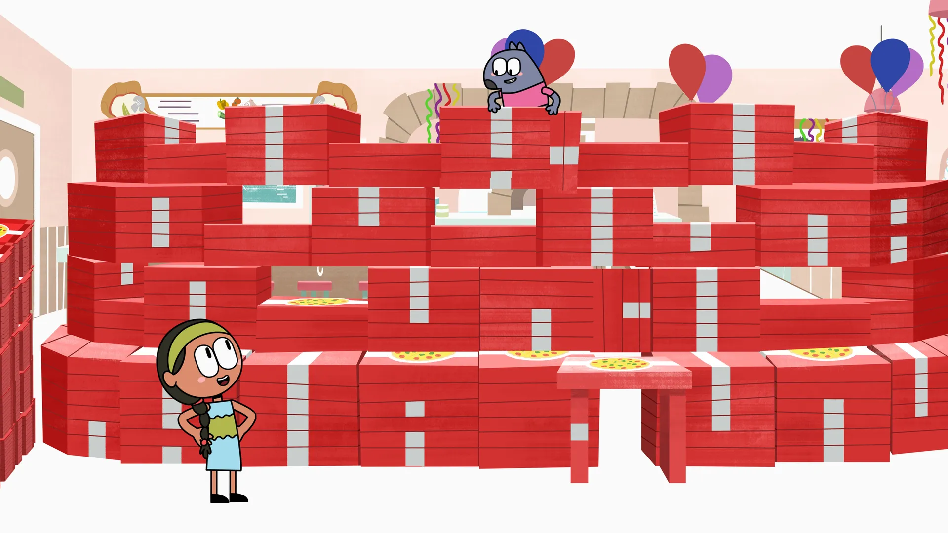 +"longDescription": "Romy décide de plier toutes les boîtes à pizza en seulement trois heures, ce qui sera un accomplissement! Elle donne tout, mais il y a un problème: les boîtes s'empilent et il faut maintenant trouver un endroit où les ranger."