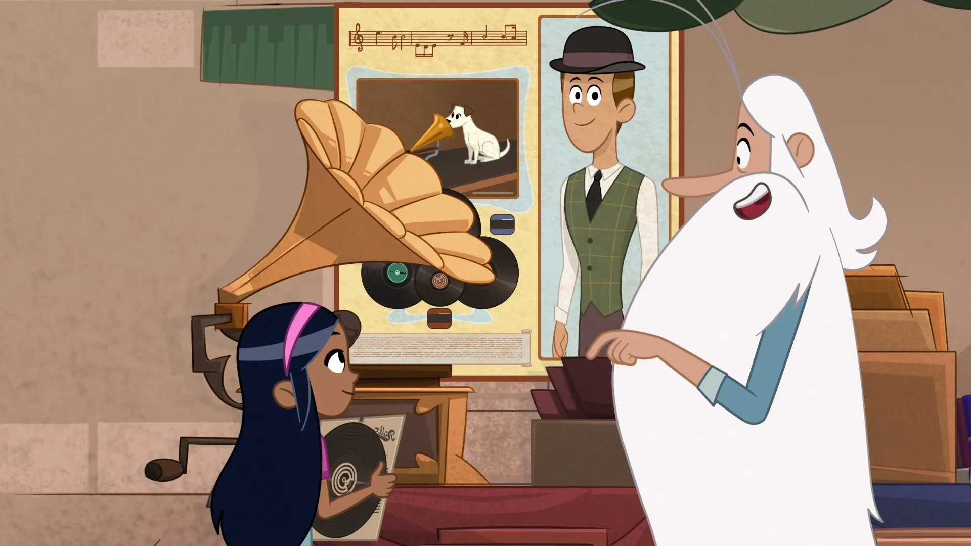 +"description": "Maestro et Petite Psi se promènent dans un vide-grenier où la fillette découvre les différents disques musicaux. "