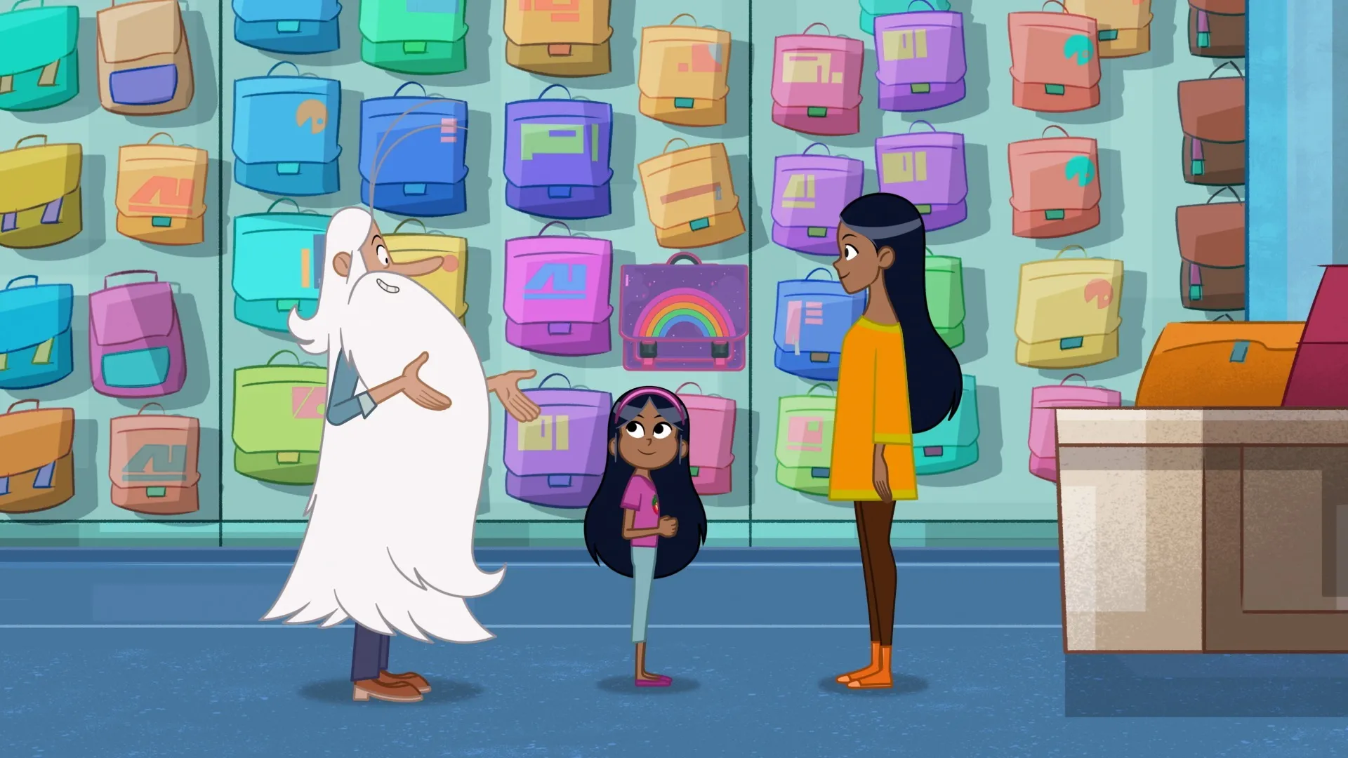Maestro emmène petite Psi à travers les âges afin de lui trouver le cartable idéal pour sa première rentrée des classes qu'elle appréhende beaucoup...