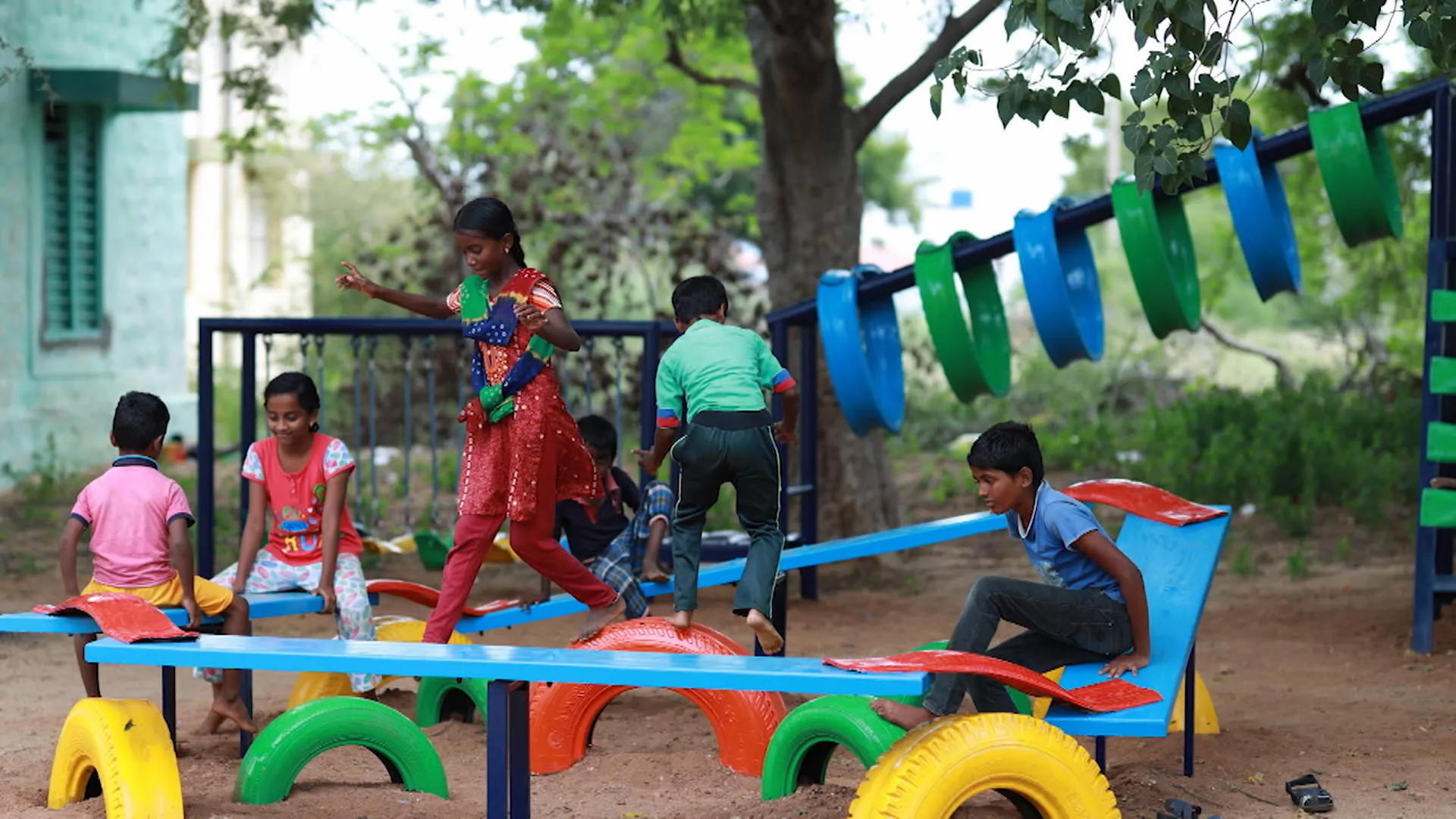 Des pneux recyclés et transformés en aires de jeux?! Waouh, c'est innovant et... inspirant!