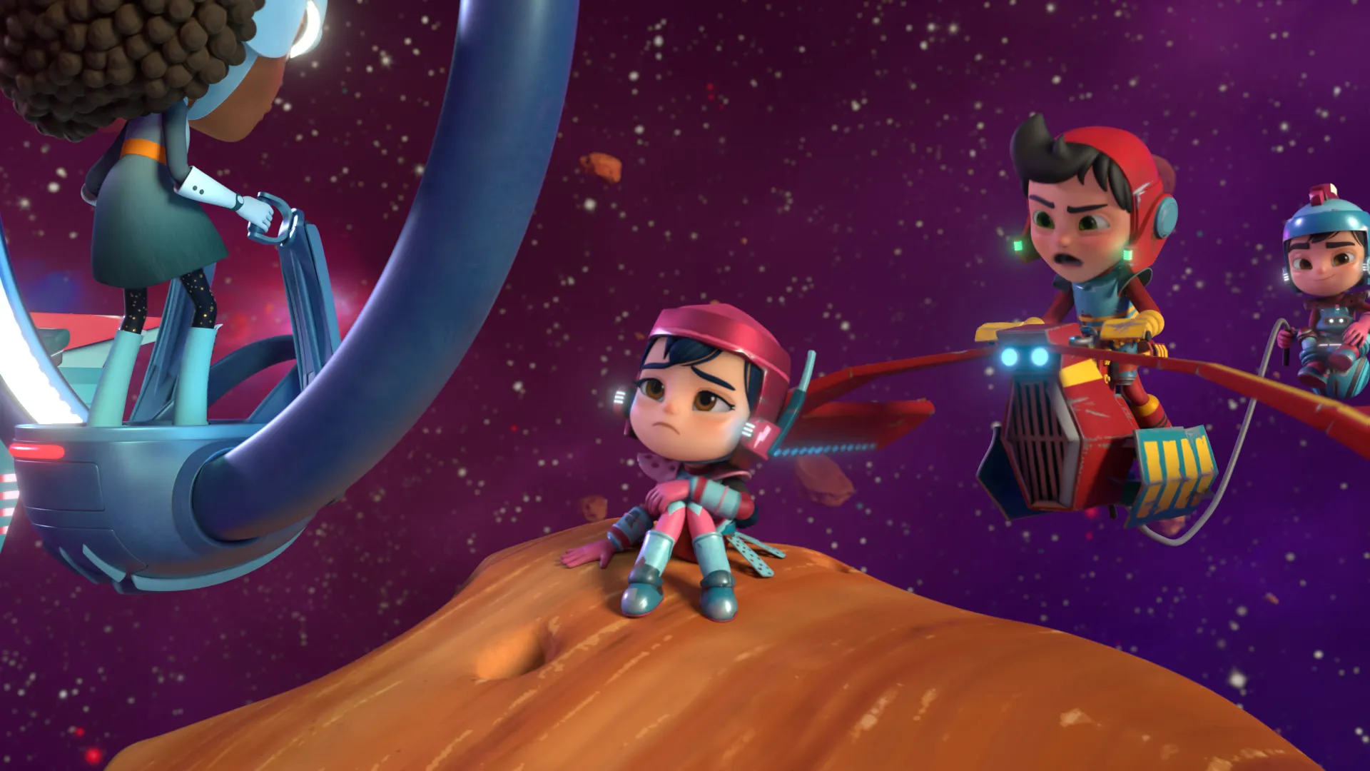 En l'an 3021, dans l'immensité de la voie lactée, Ella s'éclate avec ses meilleurs amis Slippy et Madhu. Ella connaît déjà bien l'espace mais il y en a toujours plus à découvrir! Ella n'hésite jamais à se lancer tête première dans des aventures palpitantes et même si les conséquences ne sont pas toujours heureuses, elle ne manque jamais de s'amuser.