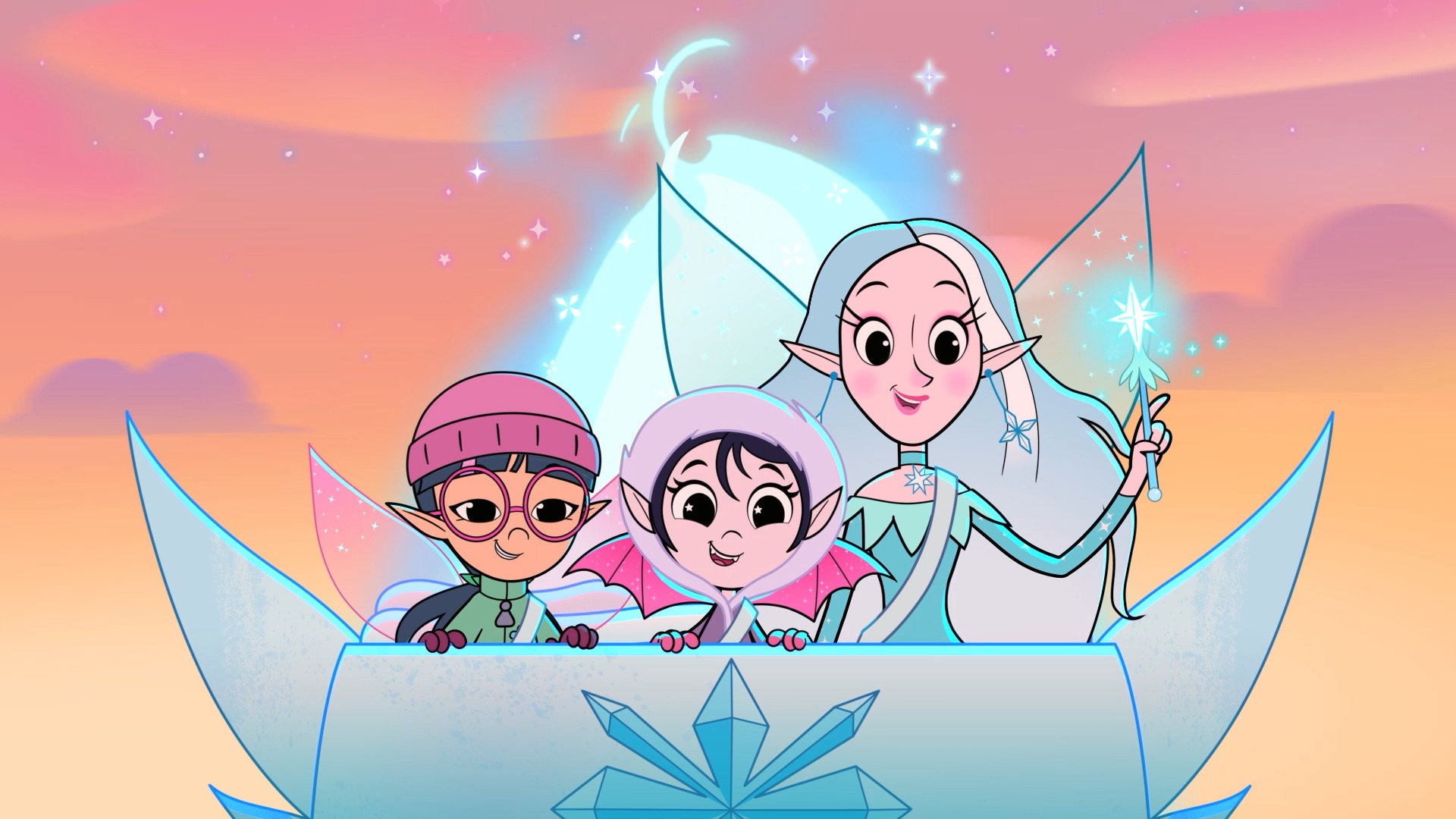 Isadora et Primrose partent avec Tante Crystal pour un trek à dos de dragon au-dessus de paysages enneigés. En chemin, elles sauvent un oeuf de dragon et le ramènent dans les ruines d'un vieux château pour qu'il éclôt sous l'aurore boréale.