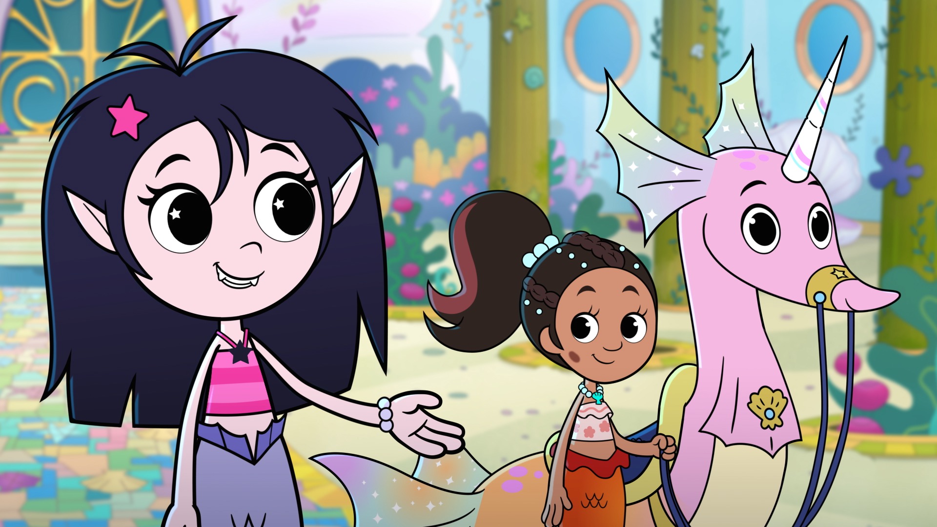 Quand Isadora et son amie sirène Marina aident la princesse Delphina à monter sa licorne des mers, la princesse reste coincée et heureusement ses amies la sauvent ! Mais elles décident de lui faire un entrainement intensif pour monter sa licorne des mers.