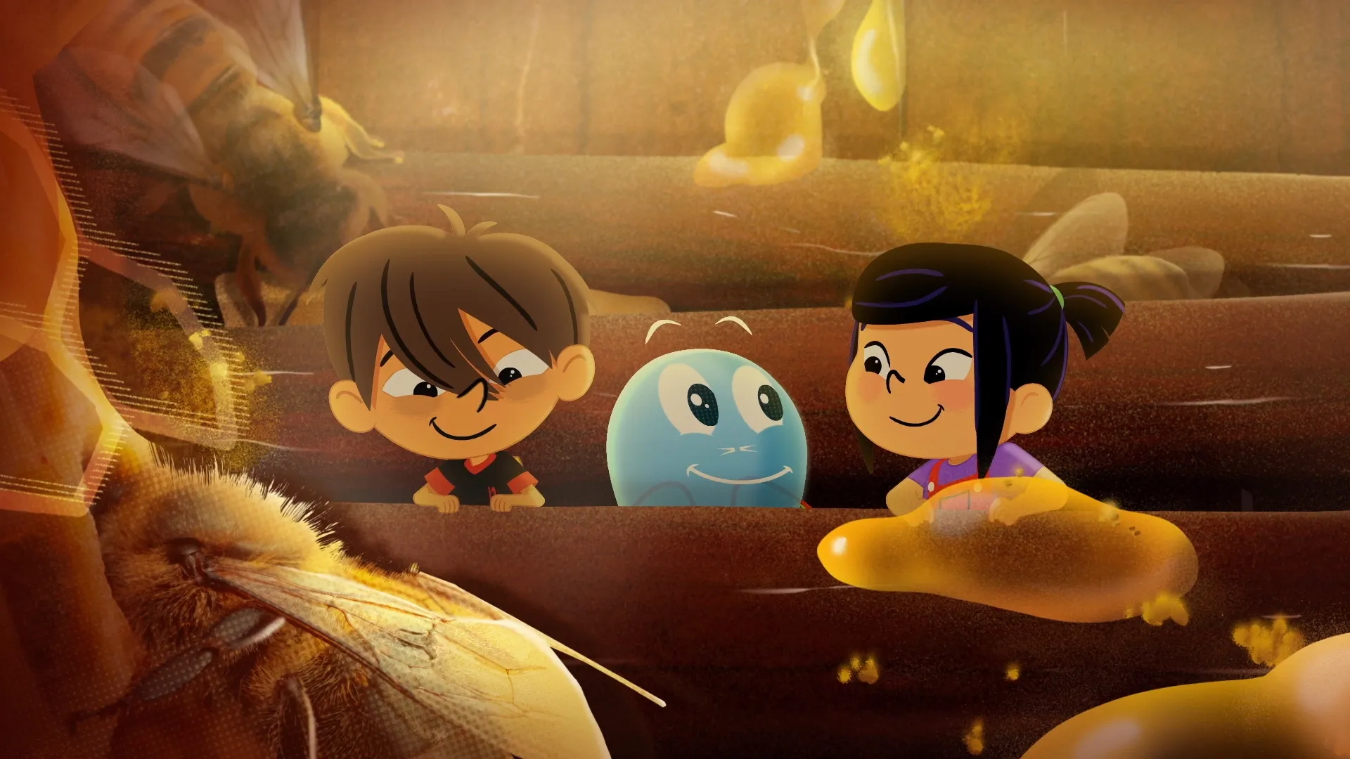 +"longDescription": "Fix et Pomme prennent leur goûter au grenier quand une abeille entre par un velux. En essayant de la chasser, Fix renverse le pot de miel de Pomme, qui coule par terre. Pomme est catastrophée, son délicieux goûter ! Kidi en rajoute, quel gâchis quand on sait le mal qu'elles se donnent pour le faire, et leur propose de découvrir comment elles s'y prennent dans le Kidiworld. Fix, pas franchement rassuré, et Pomme gourmande de tout, vont venir en aide à un apiculteur qui a perdu une de ses reines, mettant en péril l'avenir de sa ruche."