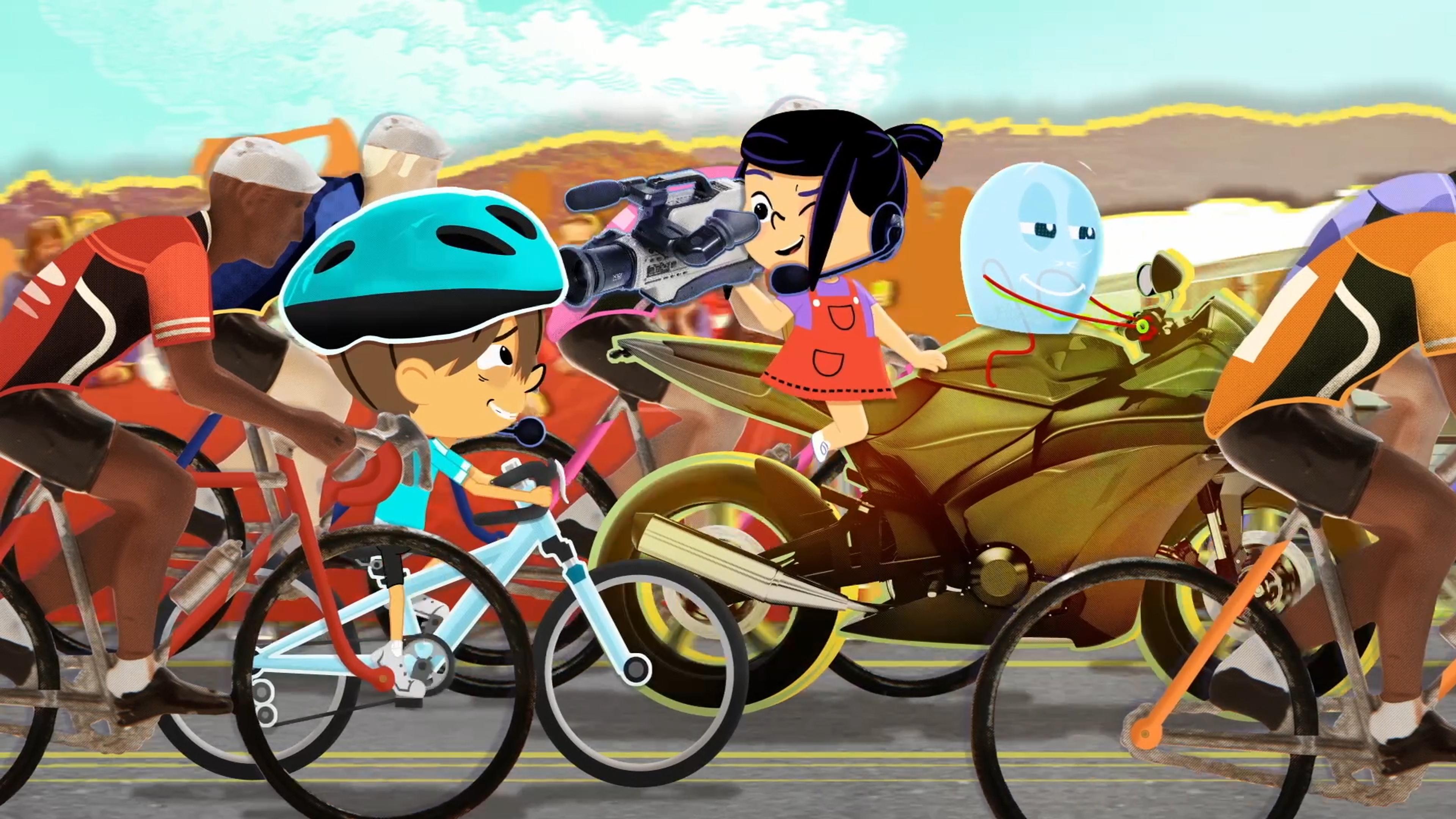 +"longDescription": "Dans le grenier, Fix est juché sur un vieux vélo d'appartement. Il se prend pour un coureur professionnel, prêt à participer aux plus grandes courses cyclistes. Ça amuse Pomme qui le provoque. Serait-il capable de gagner une grande course ? Et d'ailleurs quelle est la plus grande course cycliste au monde ? Afin de répondre à cette question, Kidi les embarque dans le Kidiworld pour découvrir le tour de France."