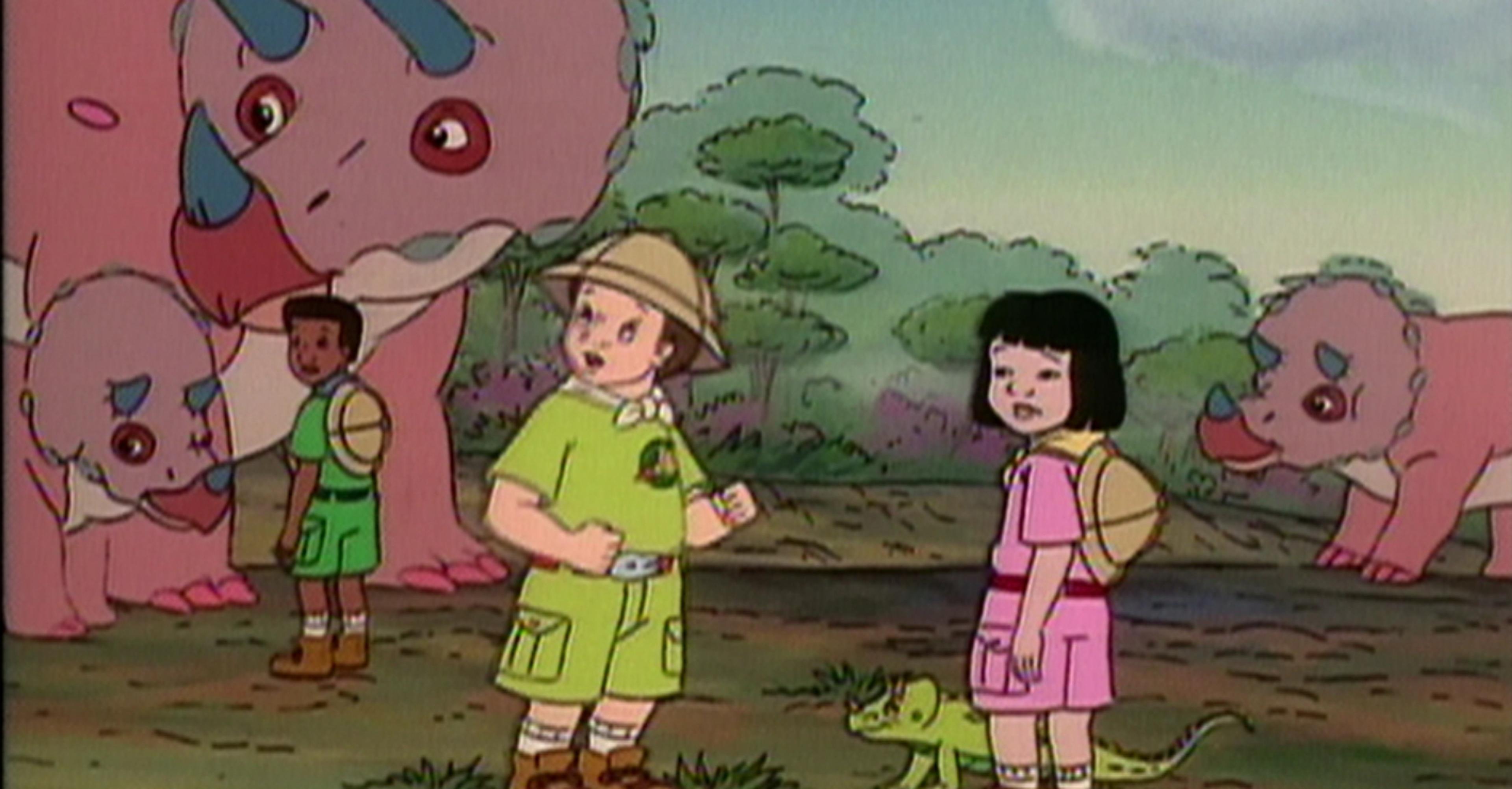 Le bus se transforme en dinosaure et toute la classe est transportée à la préhistoire.