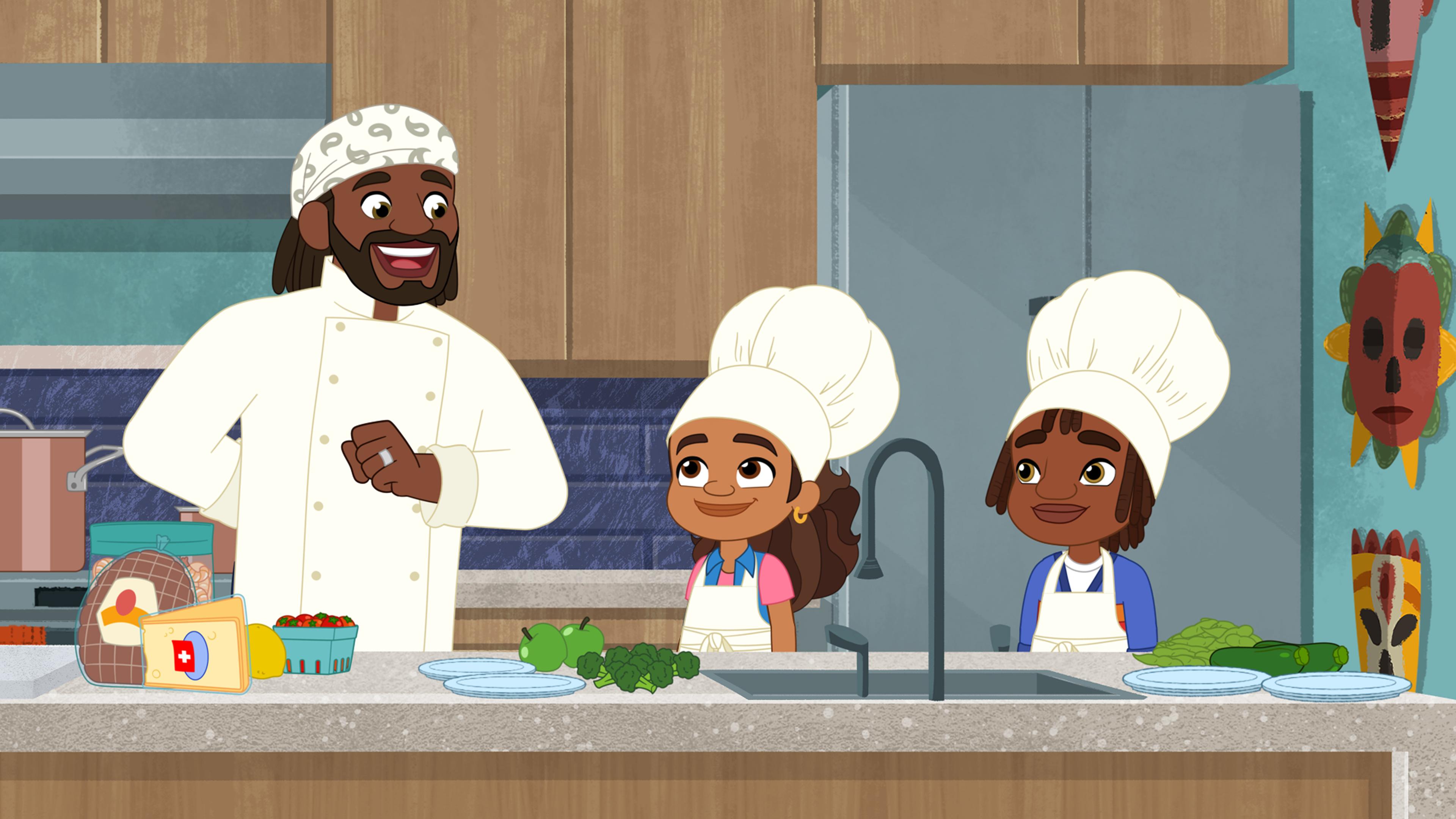 Alma aide Howard avec sa peur des pigeons. / Alma mange avec André et son père.