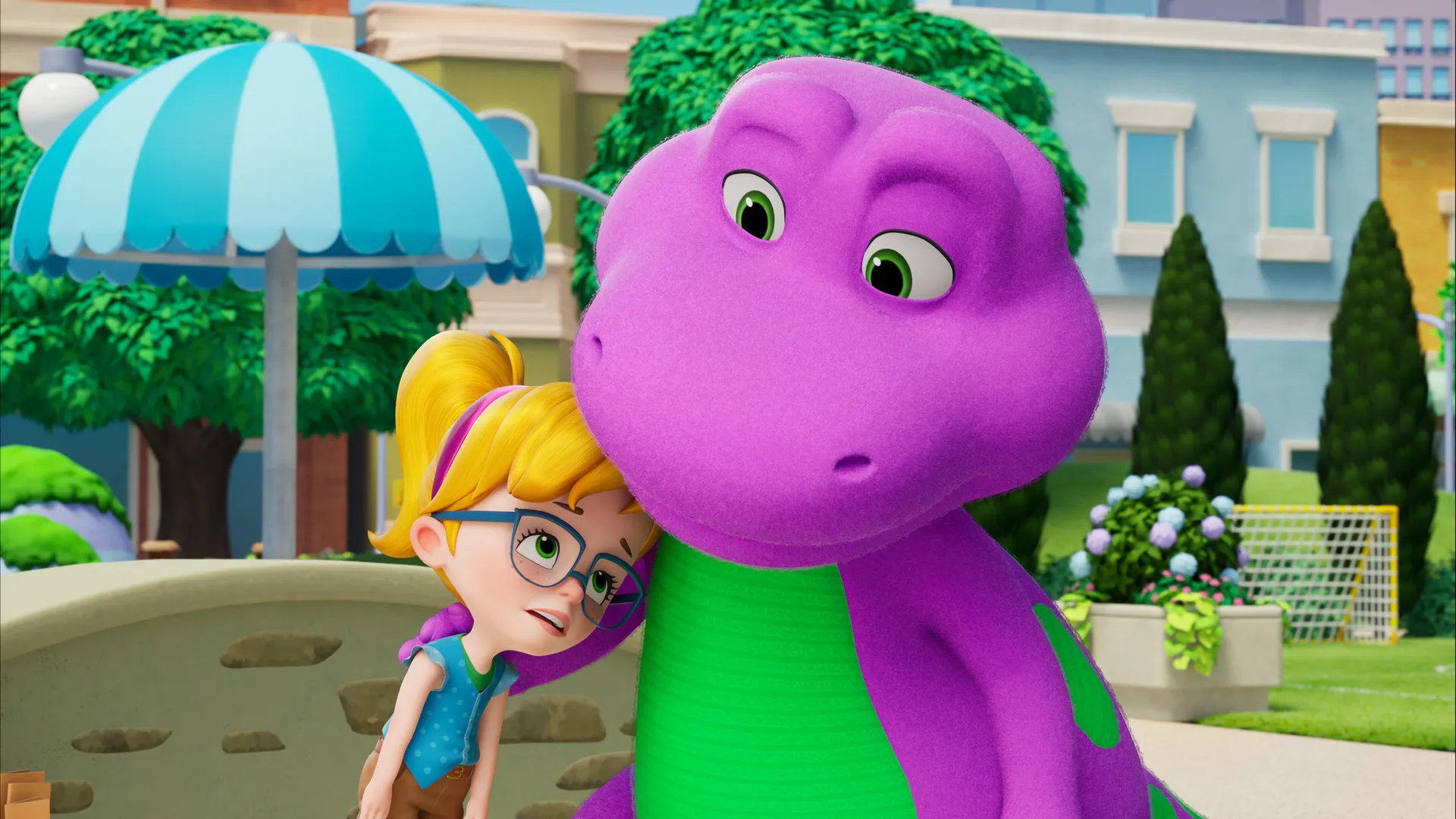 Voici Barney, le dinosaure violet qui chante, danse et répand de l'amour autour de lui ! Cette nouvelle série d'animation se déroule dans la plaine de jeux de la ville, où Barney s'amuse en compagnie des dinosaures Billy et Baby Bop, ainsi que de leurs trois jeunes amis. À travers leurs aventures créatives ou amusantes, Barney aide les enfants en bas âge à comprendre leurs émotions et leurs tracas. Il leur explique comment s'apprécier, comment aimer et traiter les autres avec respect.