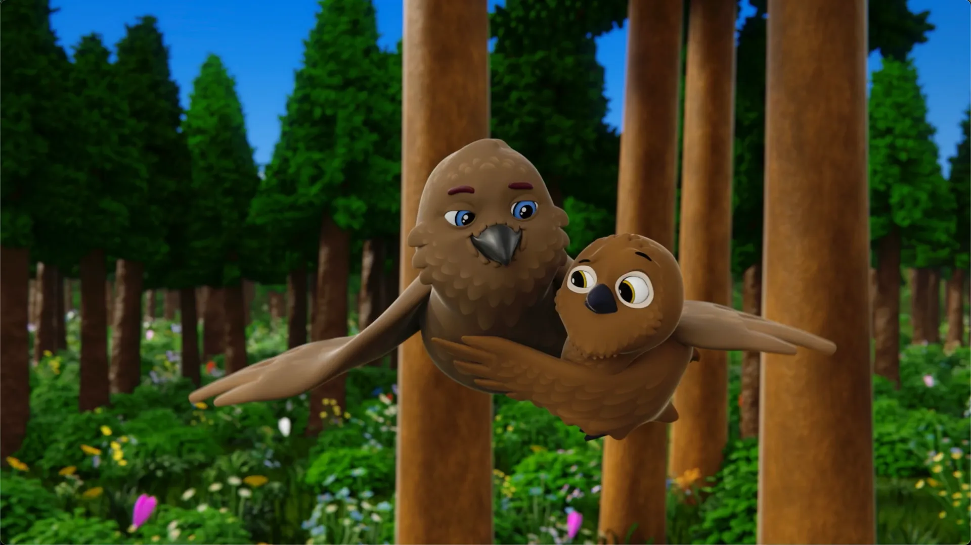 Léo le lagopède essaie d'apprendre à voler comme les aigles, avec l'aide de sa copine Irène l'aiglonne.