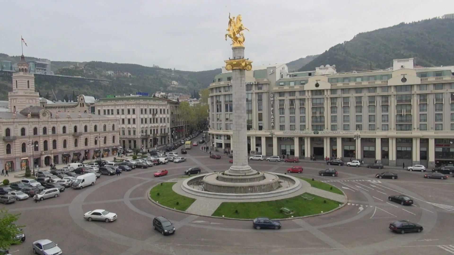 +"description": "A Tbilissi, la place de la Liberté, avec son imposant hôtel de ville, est un des points névralgiques de la capitale géorgienne. "