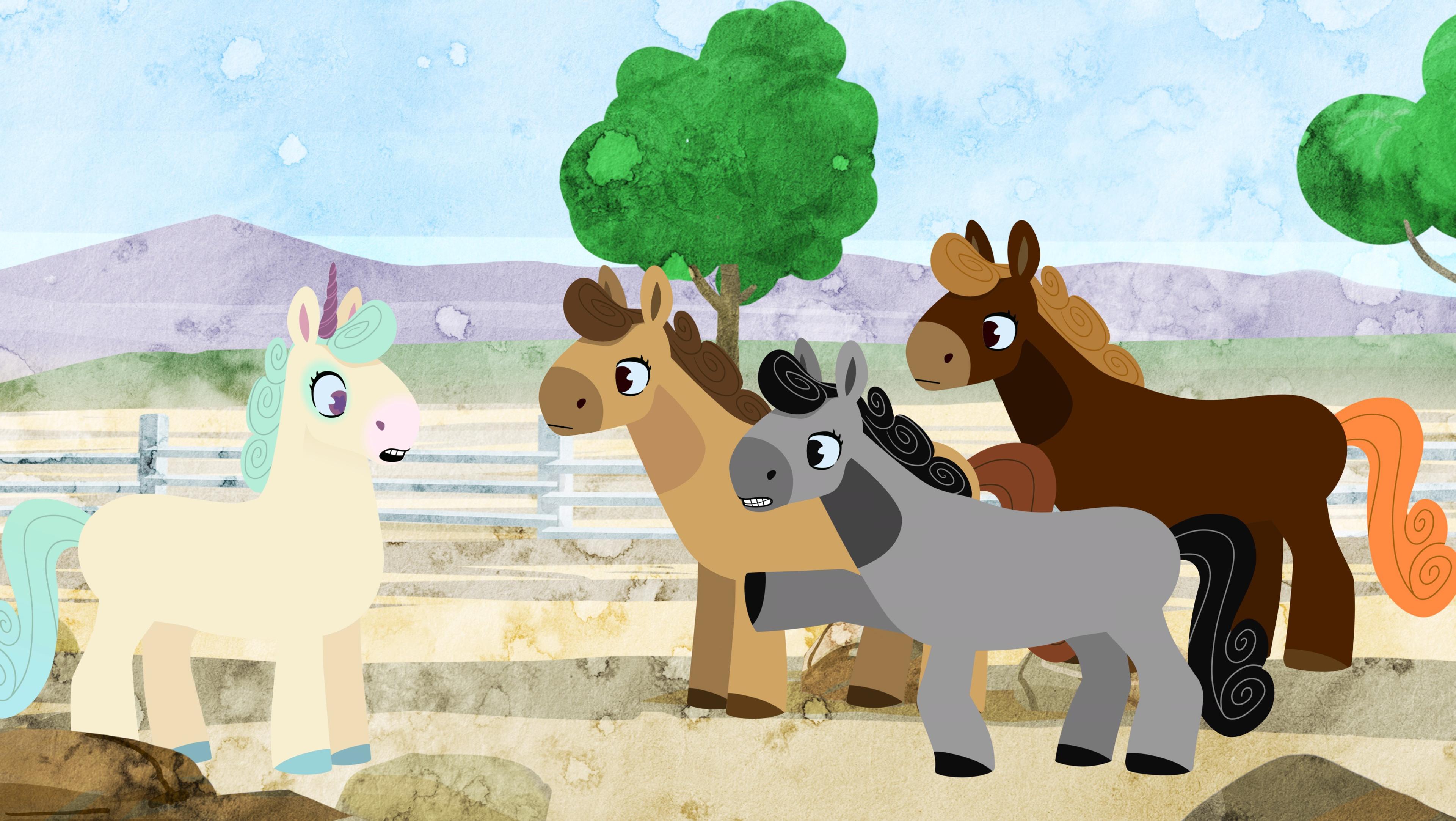 Les chevaux ne veulent pas que la licorne participe à leurs jeux.