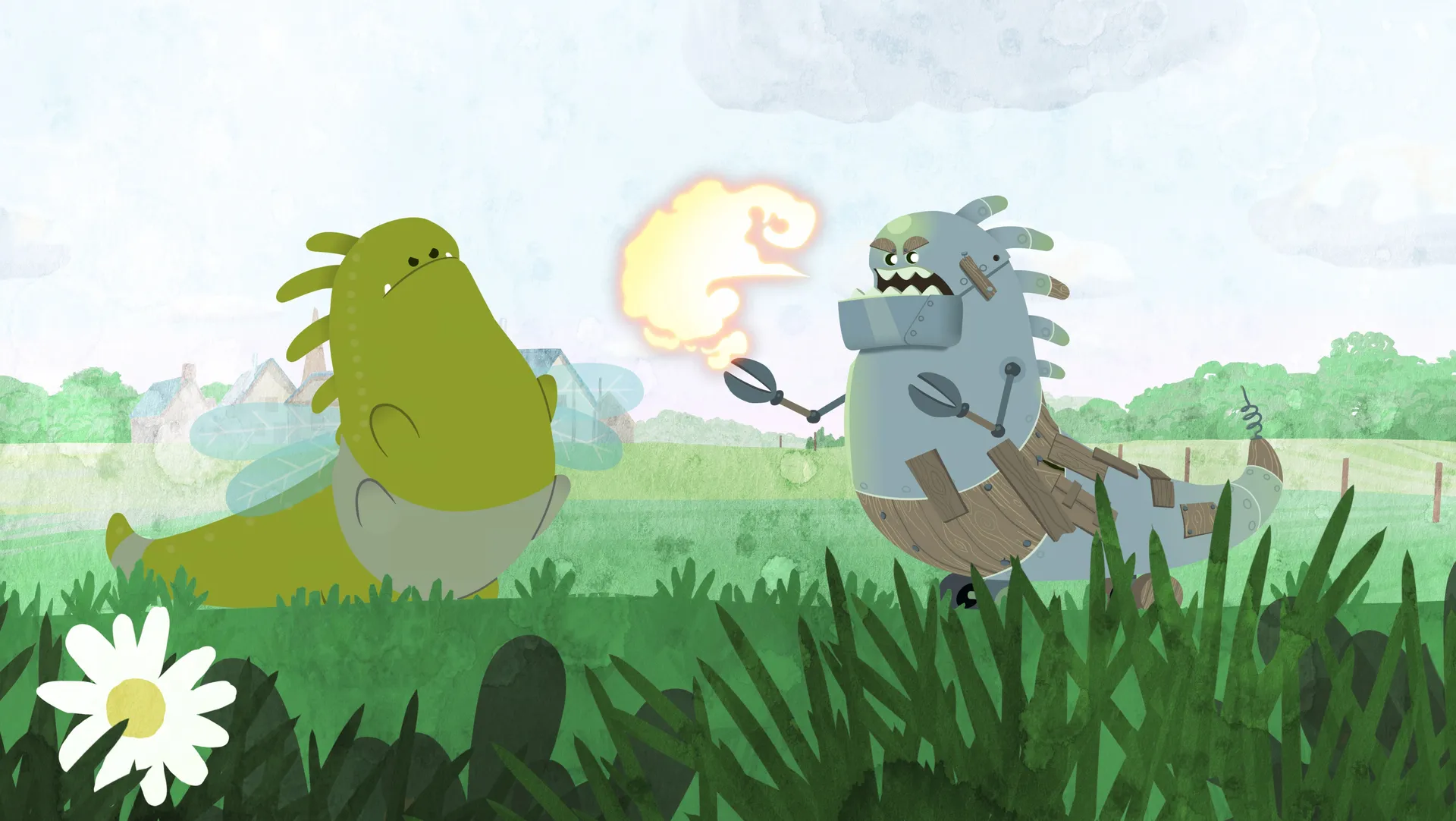 En temps normal, quelques boules de foudres suffisent à garder les loups à distance, mais depuis que ce dragon a attrapé un rhume, il n'arrive plus à en produire.