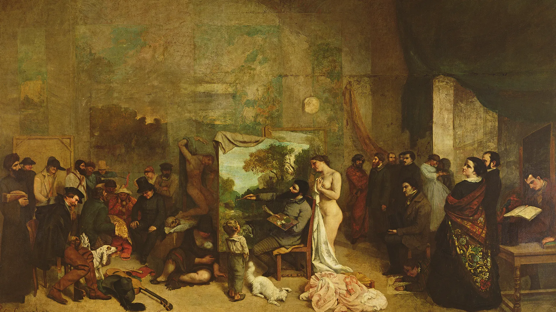 L'ATELIER DU PEINTRE (1855) nous projette au coeur du Second Empire. Gustave Courbet, quelques années après la révolution de juillet 1848, nous y offre sa vision de la société.