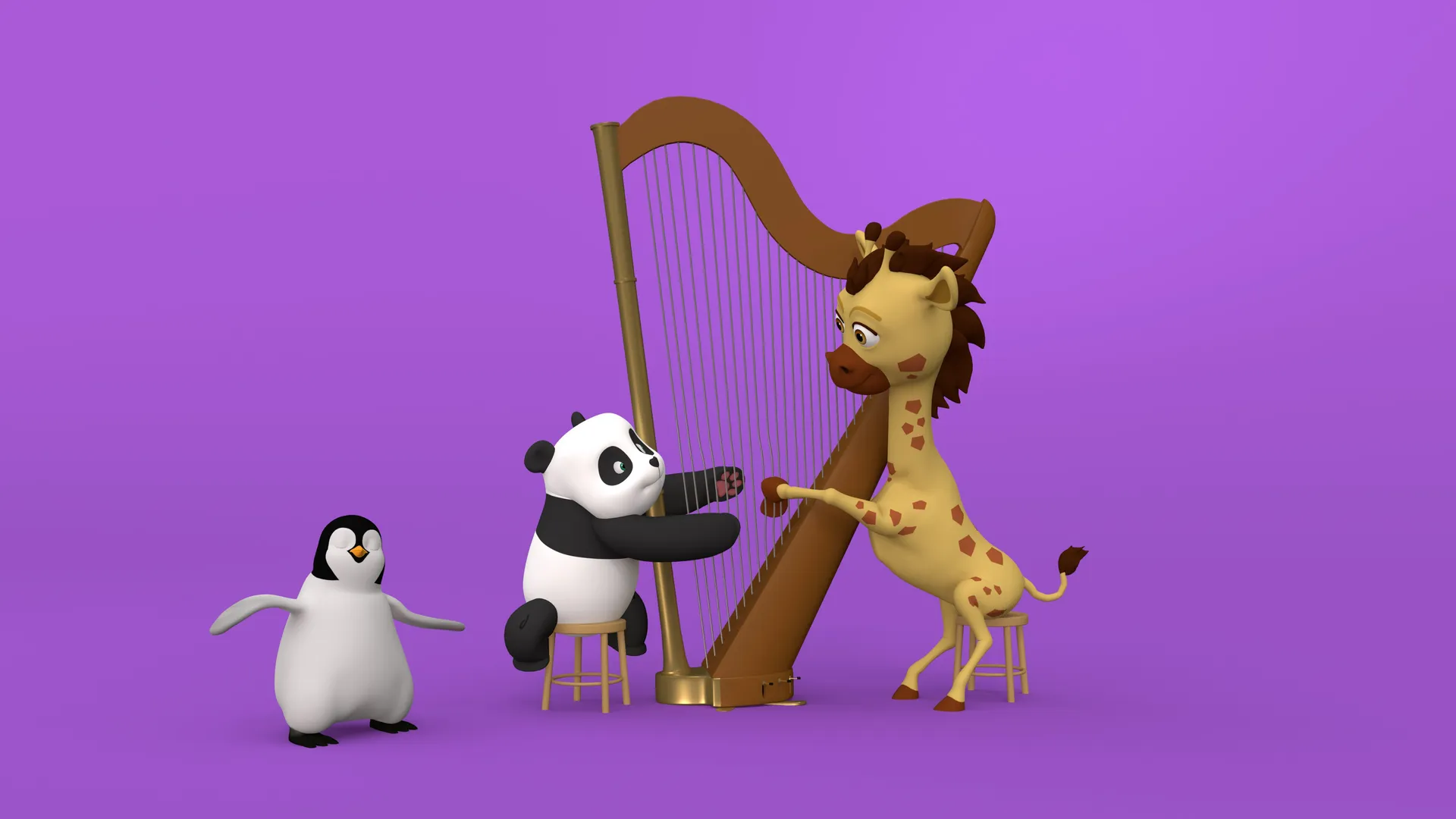 Lilou Bambou explore des sons avec des élastiques quand une musique féerique l'envoûte. C'est son amie Girafe qui joue de la harpe. D'abord intimidée par l'instrument, Lilou Bambou arrive finalement à produire de belles notes et s'amuse à jouer.