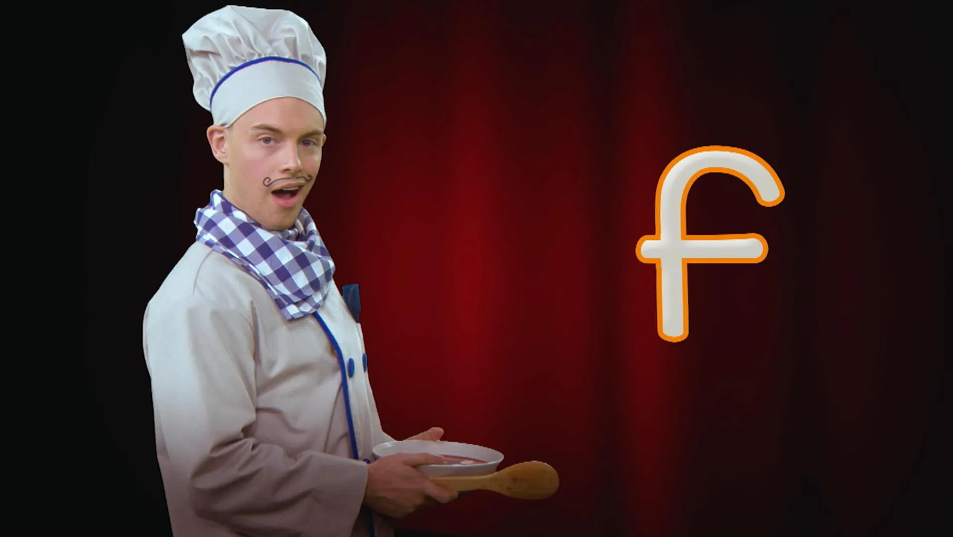 Apprends à écrire la lettre f minuscule avec Chef Alphabet.