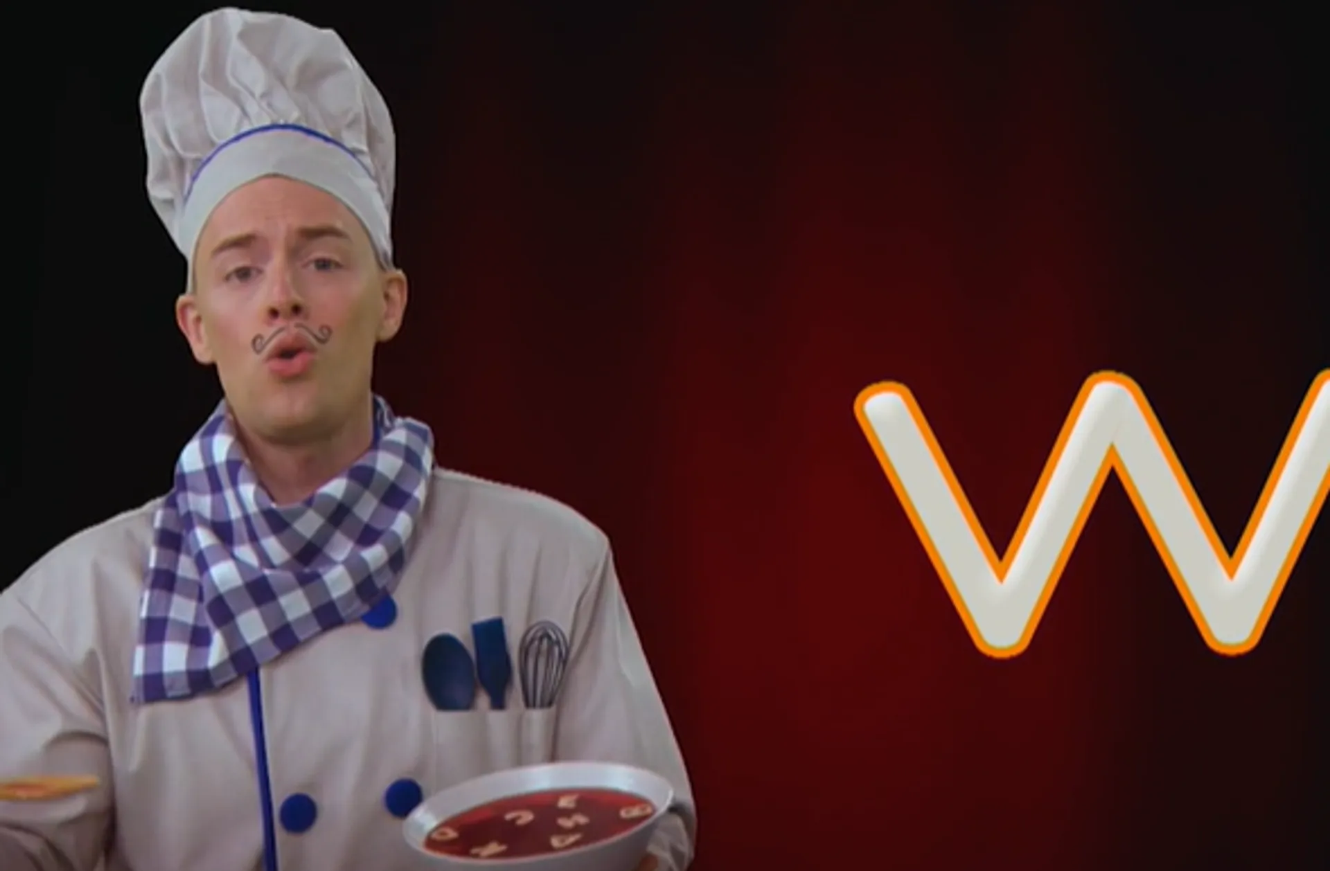 Apprends à écrire la lettre w minuscule avec Chef Alphabet.
