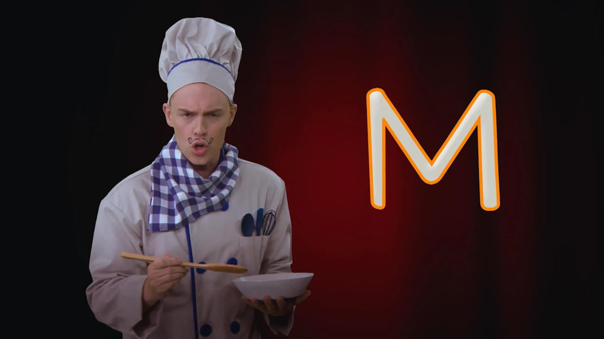 Apprends à écrire la lettre M majuscule avec Chef Alphabet.