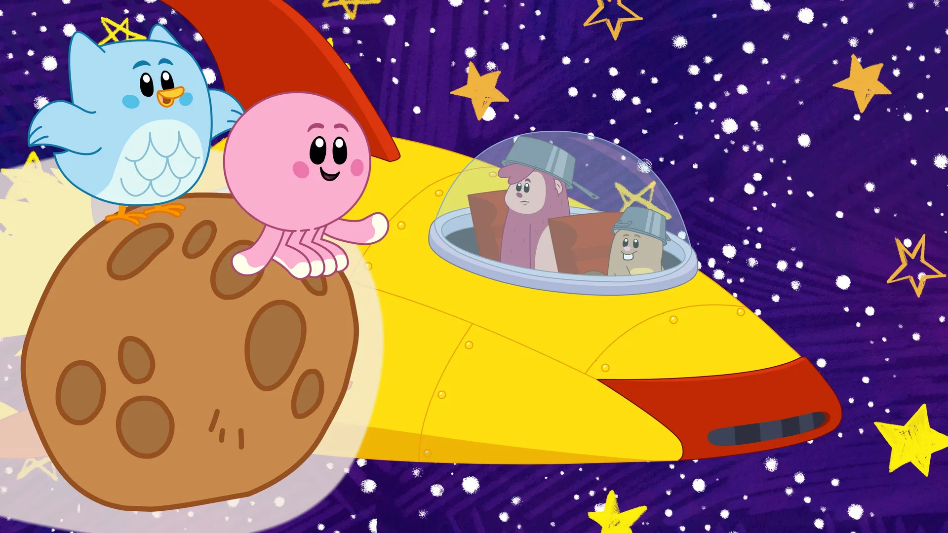 Petit Yéti rêve d'aller dans l'espace, les Aventuriers sont donc prêts à décoller. Mais le plan déraille quand petit Yéti se rend compte qu'ils ne sont pas vraiment allés sur la lune.