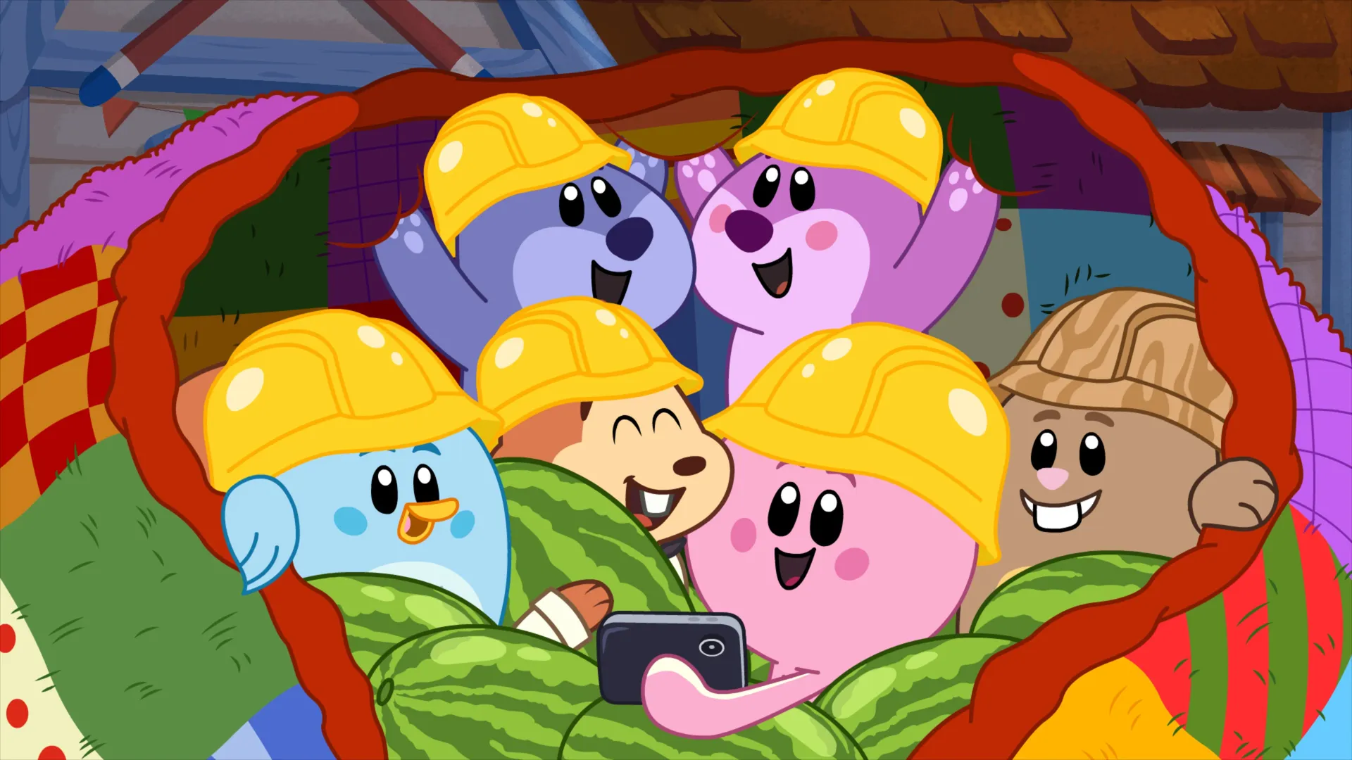 +"description": "Après avoir remporté une énorme quantité de laine, Inkie tricote des chapeaux, des couvertures, des mitaines et même un couvre-canoë pour ses amis. "