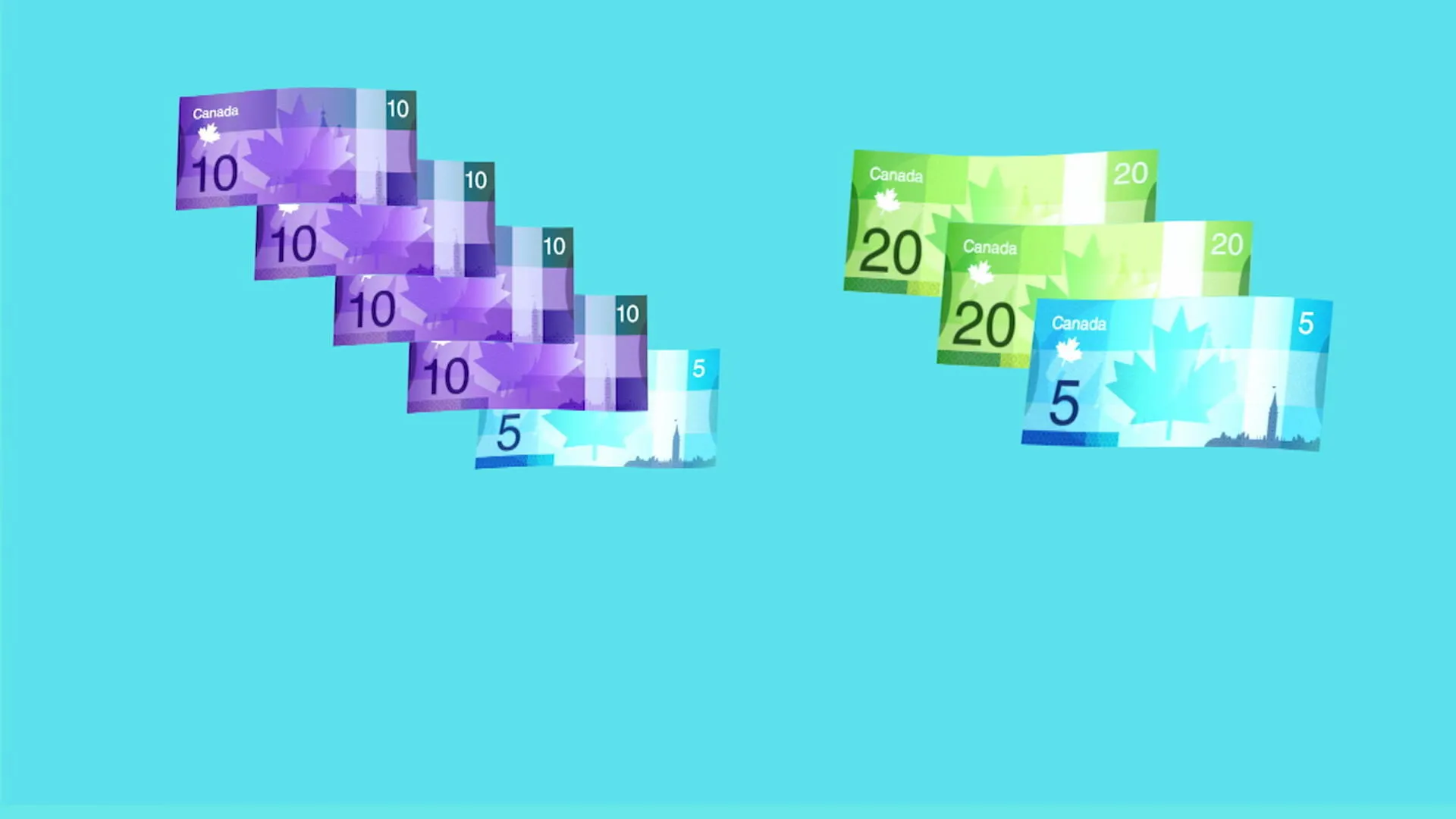 Sais-tu comment faire 45 dollars avec des billets de 5 et 10 dollars de la monnaie canadienne?